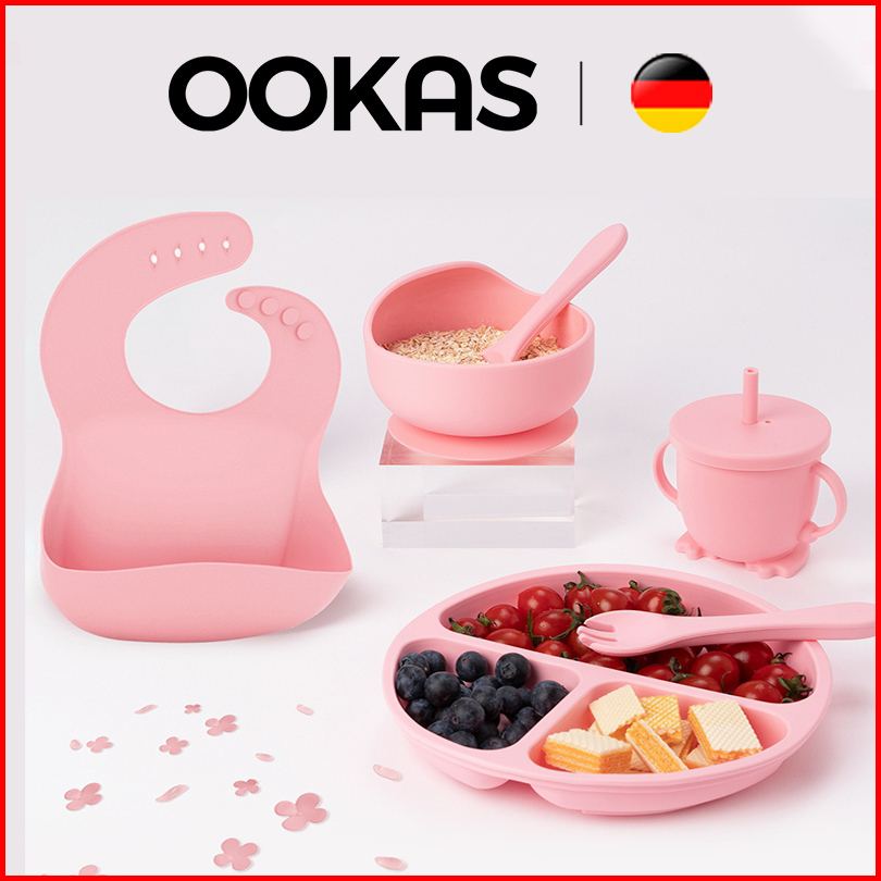 Ookas Sendok Peralatan Makan Bayi Mangkok Celemek Training Silicone