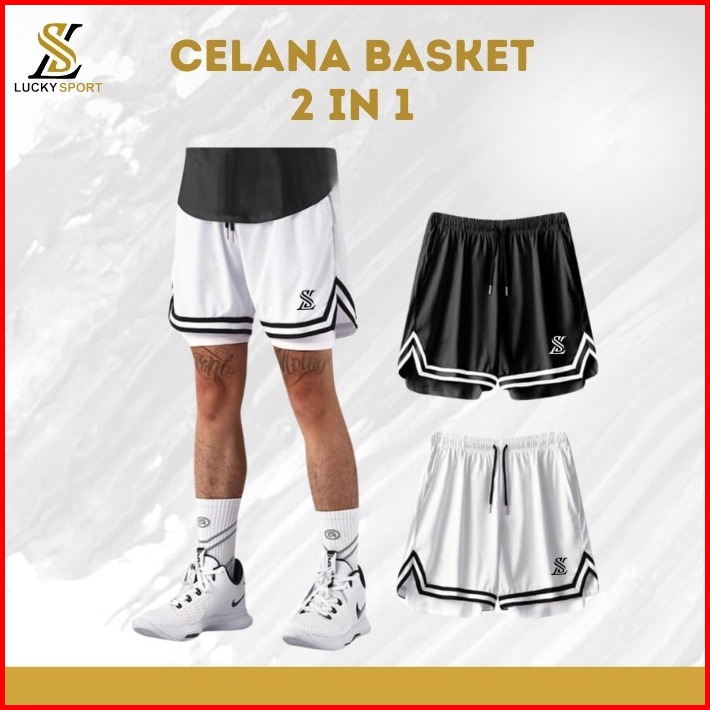 Celana Basket Olahraga Pendek 2in1 Legging Running Fitnes Gym Unisex Basketball Short Dengan Compression Short