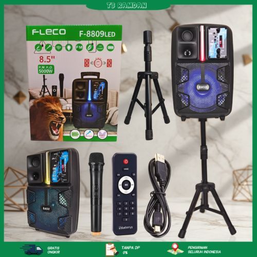 SPEAKER BLUETOOTH KARAOKE FLECO F 8809 LED 8'5 INCH FREE MIC WIRELESS REMOTE STAND