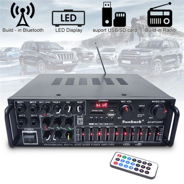 Amplifier Bluetooth Subwoofer Eq Audio Amplifier Karaoke Home Theater FM Radio AV-999BT