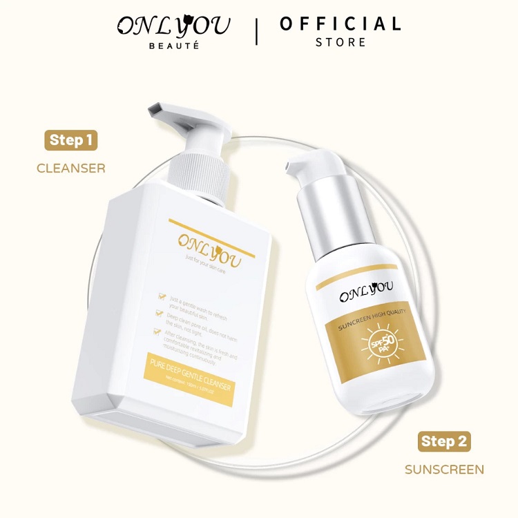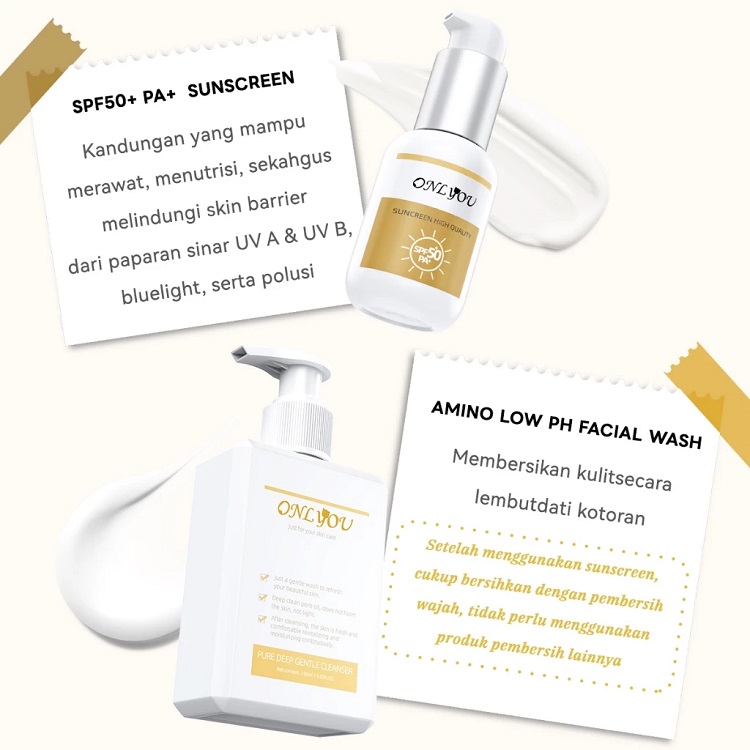 ONLYOU Paket Sunscreen SPF50+ PA+ kosmetik wajah UV sunblock make up sepaket &Onlyou Facial wash For All Skin Type Wajah