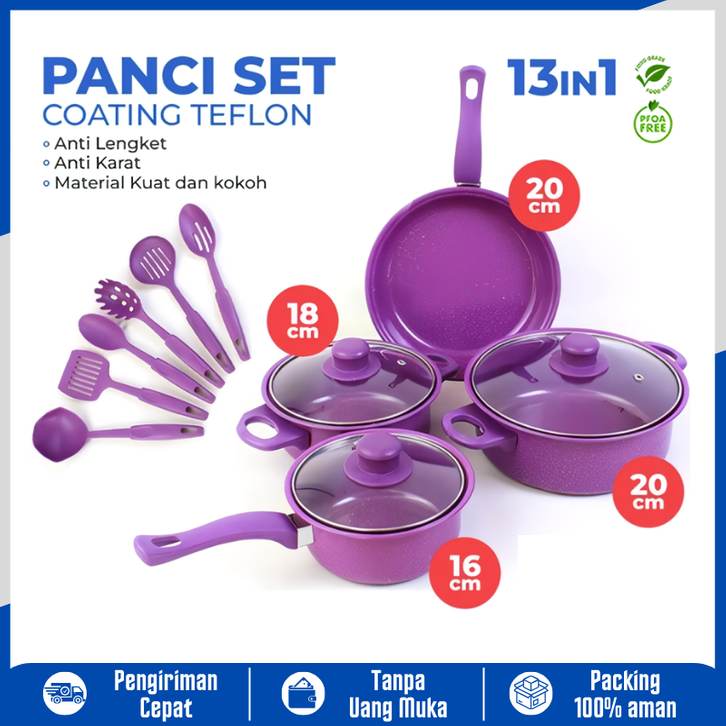 Cookware 13in1 Teflon Anti Lengket 1 Set Lengkap Wajan Penggorengan Risol Panci Freemir Stainless Steel Martabak Maxim