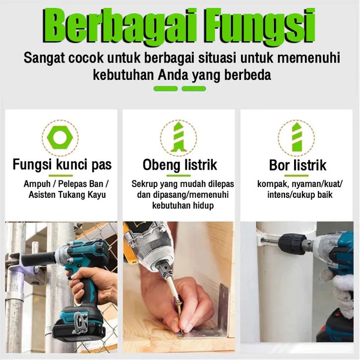 Reaim Mesin Bor Impact 1300Nm 388V 2 Baterai Jumbo Wrench Multifungsi JLD Makita Tekiro Modern APR Ap84 Pro Max 1800 Nm
