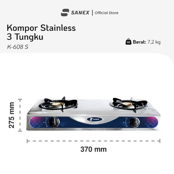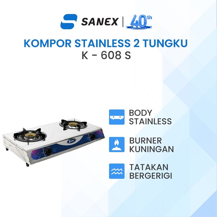 [Star] SANEX Kompor Gas Stainless Steel 2 Tungku K-608 S