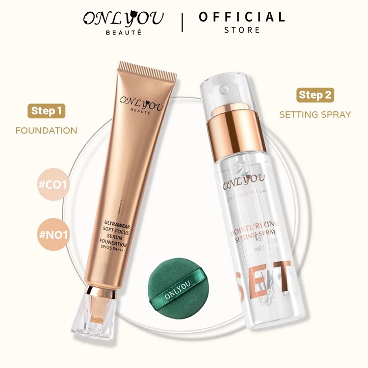 ONLYOU 3PCS Perfect Base Makeup Paket waterproof tahan lama Foundation 30G & Moisturizing Setting Spray Makeup 50ML