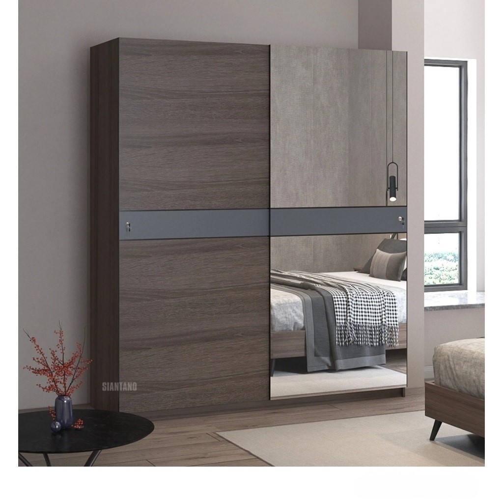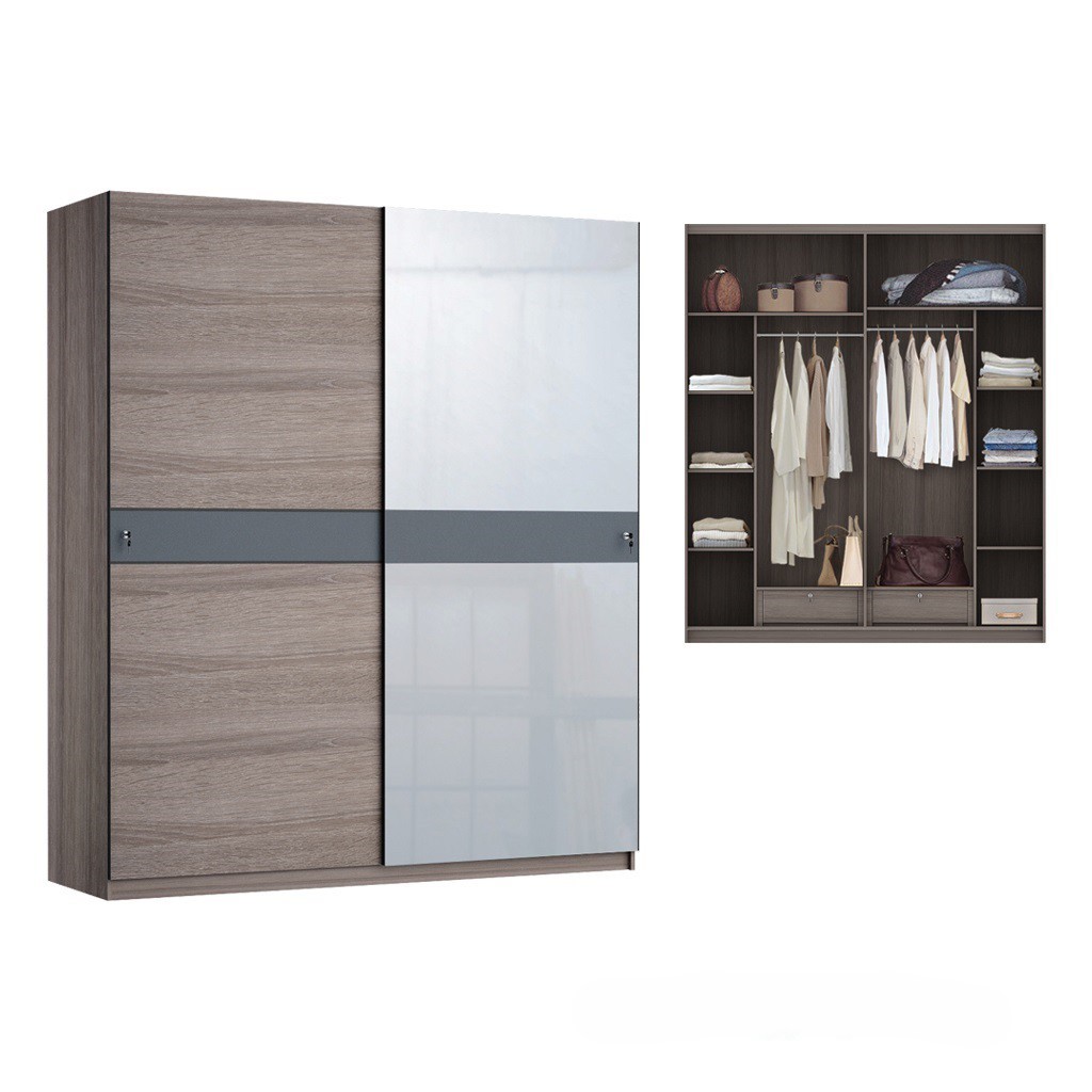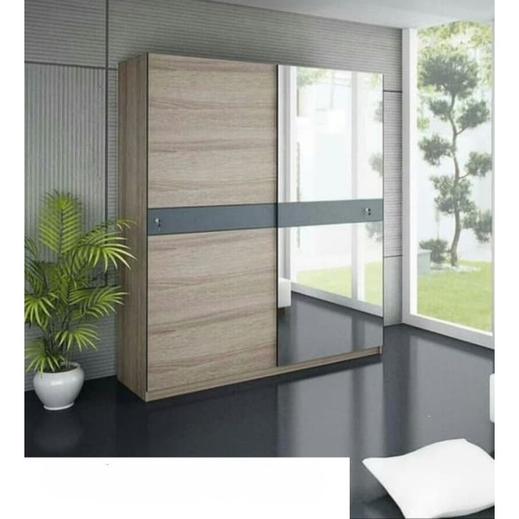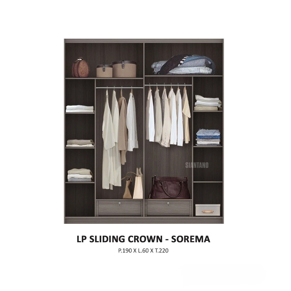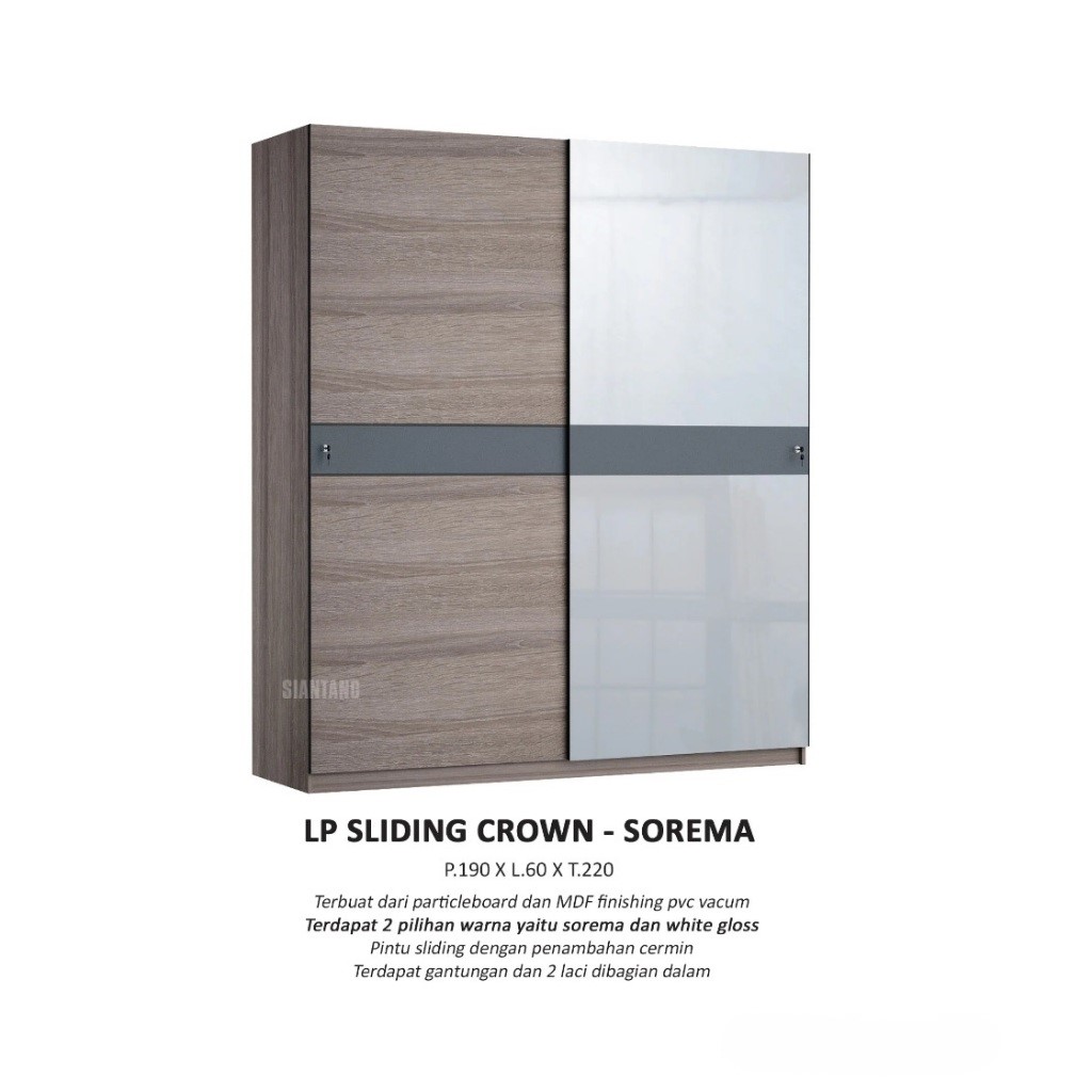 Lemari Pakaian - Wardrobe 2 pintu Sliding CROWN Sorema Grey