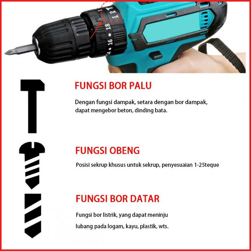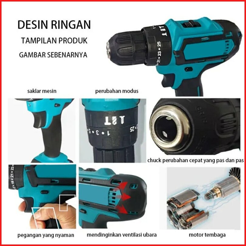 Maklta 388v 3 Sistem Mesin Bor Baterai Tangan Cordless Drill Battery Impact Drill Cordless Electric Drill Impact Cordles