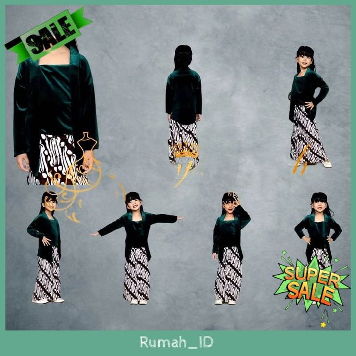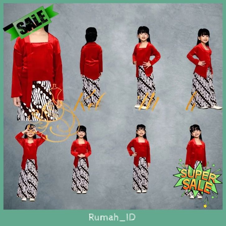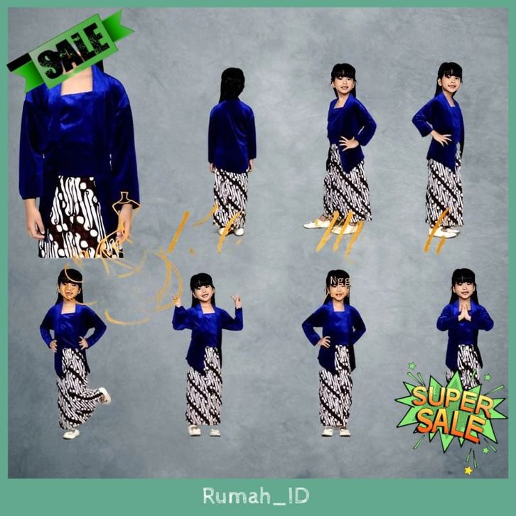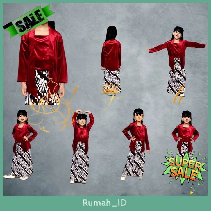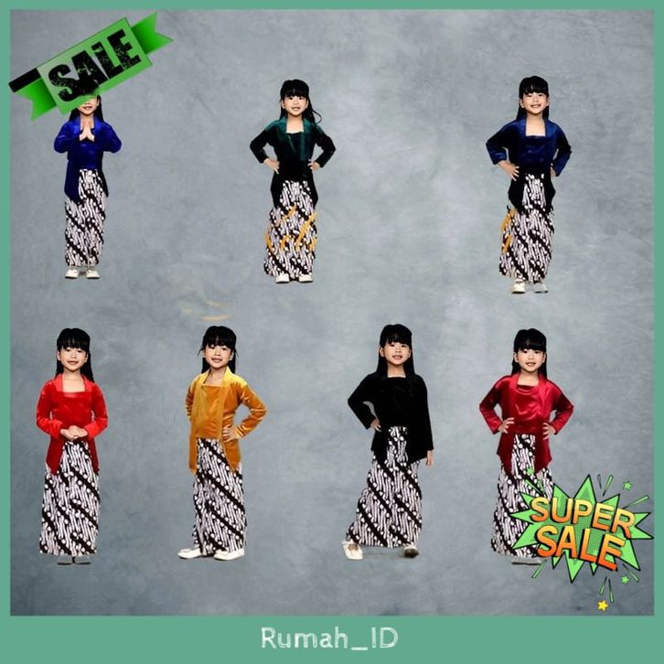 Setelan Kebaya Kutubaru Bludru Polos Setelan KebaRok Wiru Anak Perempuan Setelan Kebaya Baju Adat Anak Perempuan