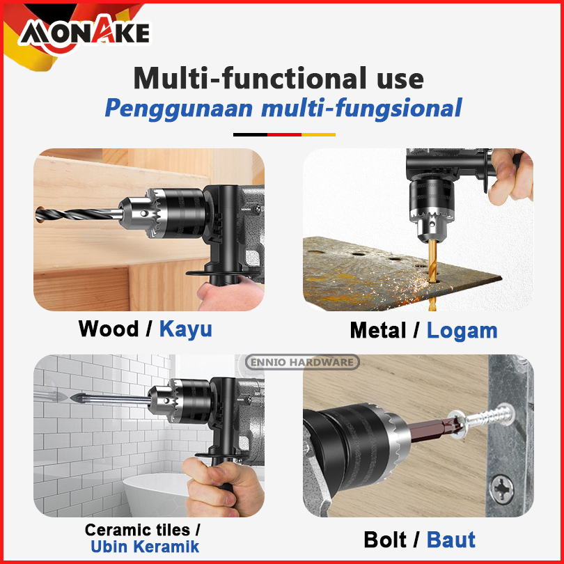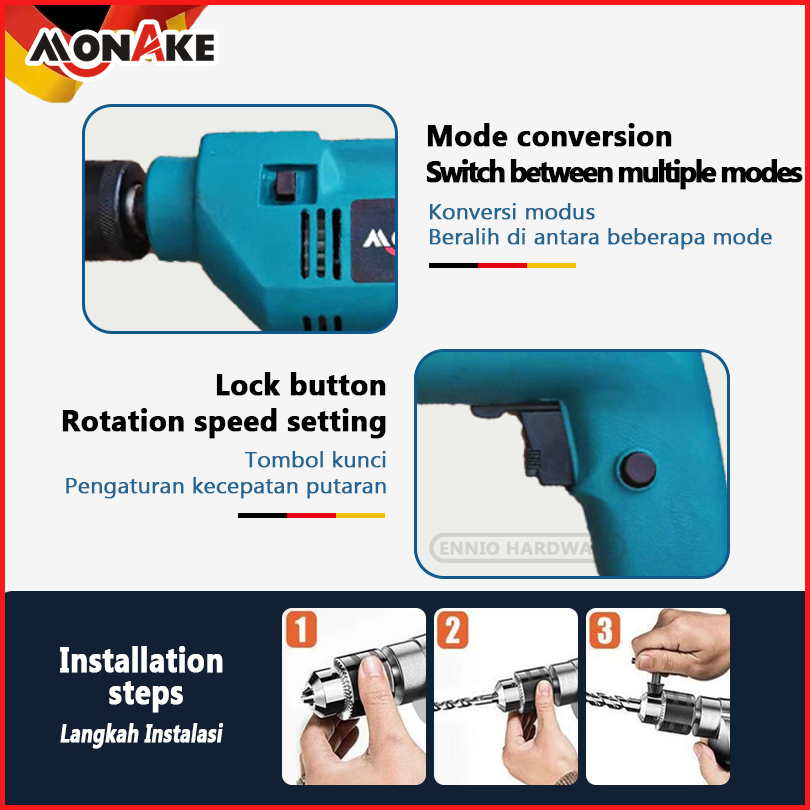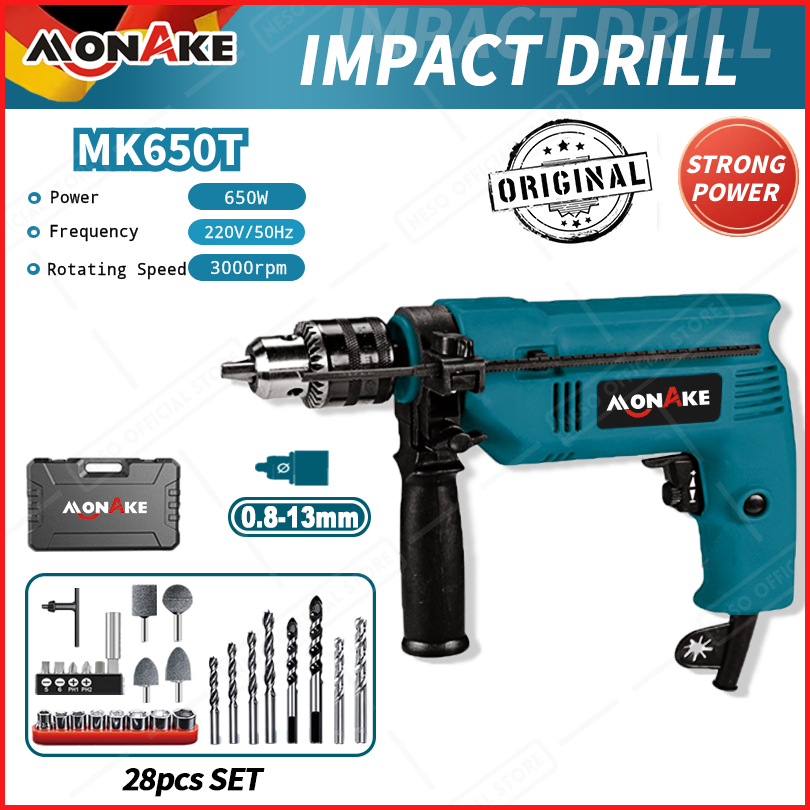 Mesin Bor 13mm Impact Drill Tangan Listrik Electric Drill Koper Set Besi Bor Beton Kayu Tembok Putaran Bolak Balik Full