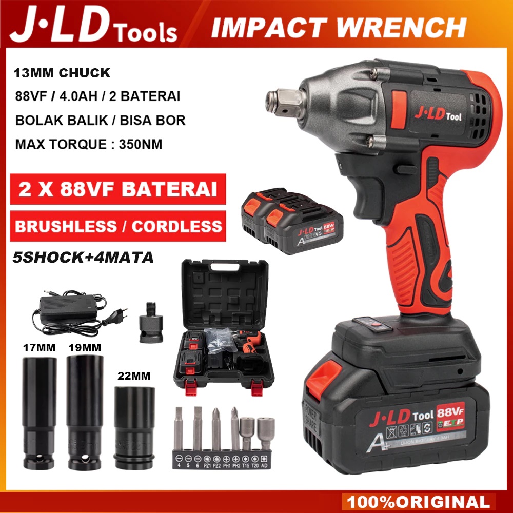 JLD 88VF Brushless Mesin bor Impact baterai 13MM Cordless Impact wrench Impact jld JV88 2baterai impek baterai torsi bes