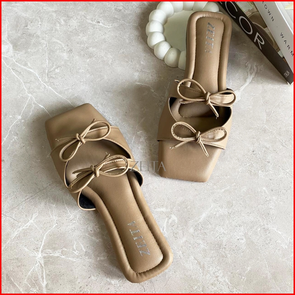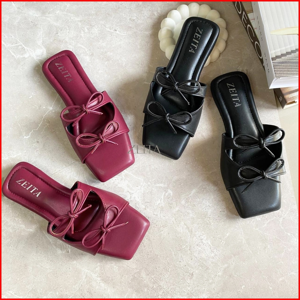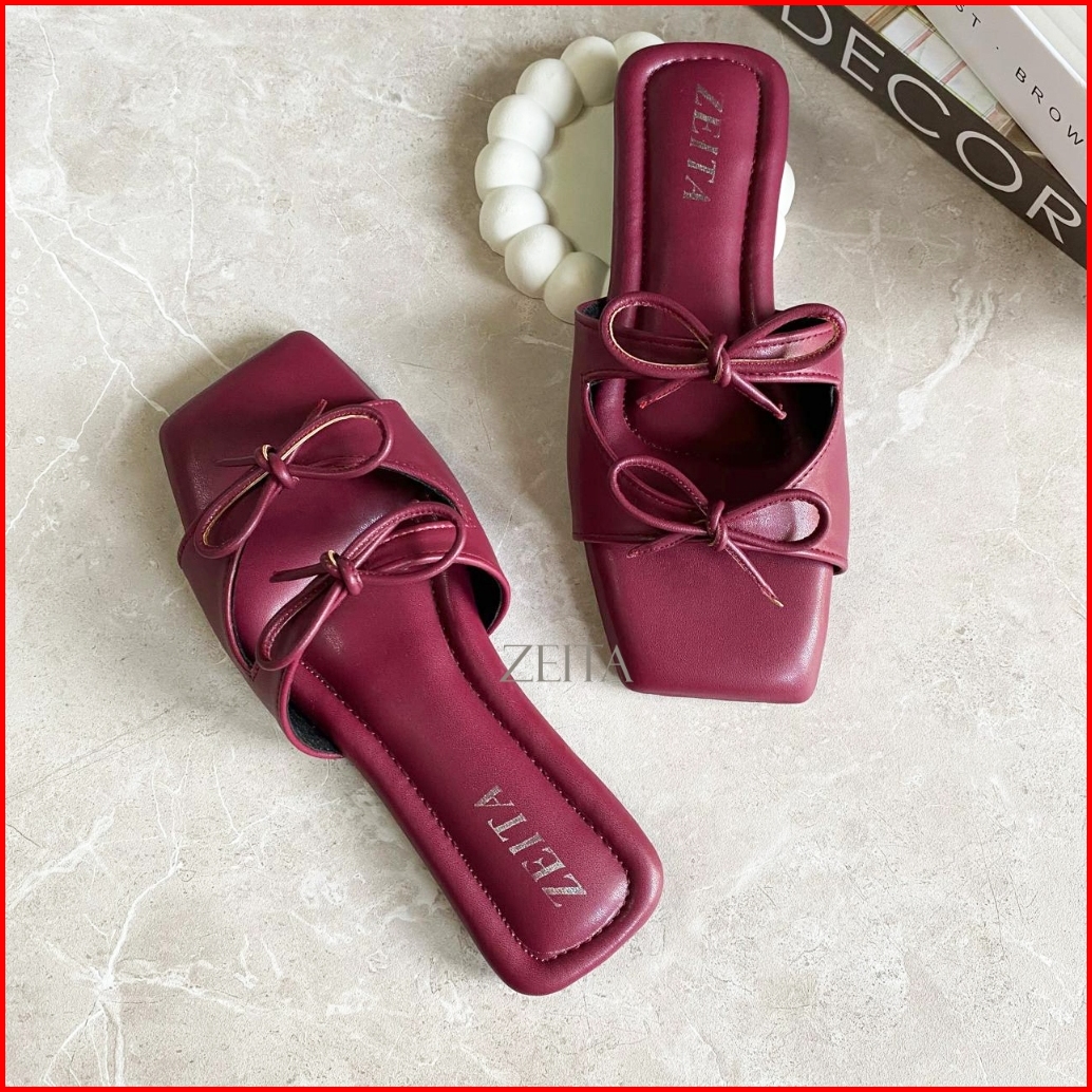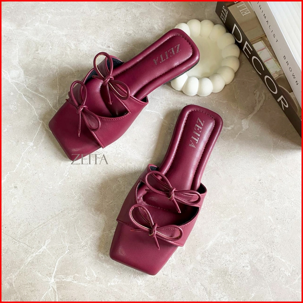 Zeita Sandal Teplek Wanita Tali Pita Lucu Sandal Coquette Maroon Model Simpel Bigsize 36-42 43 44