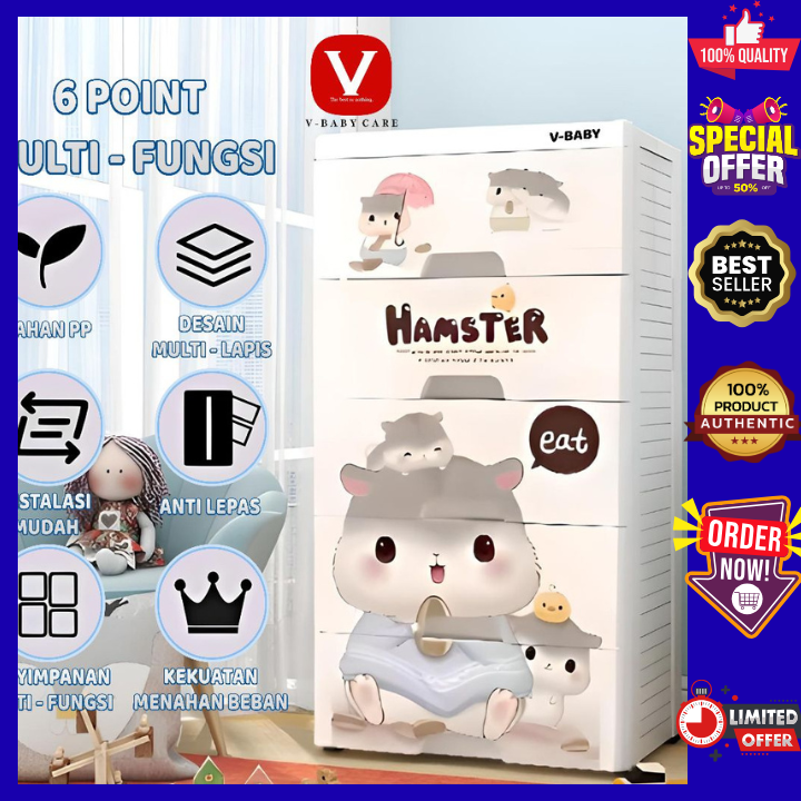 [Star]Lemari Pakaian Plastik 3/4/5/6 susun jumbo karakter Kelinci Super Lucu 4 5 Tingkat C80/C96 Lemari Baju Anak