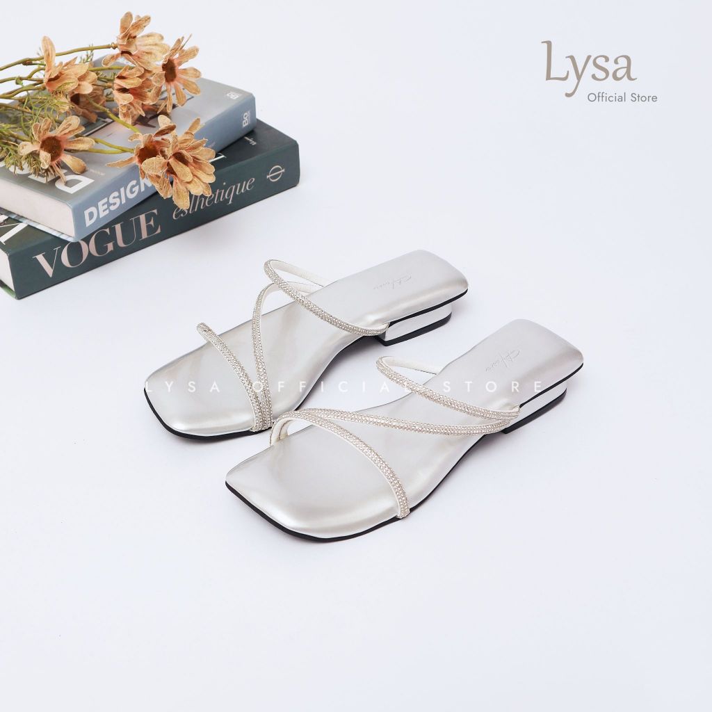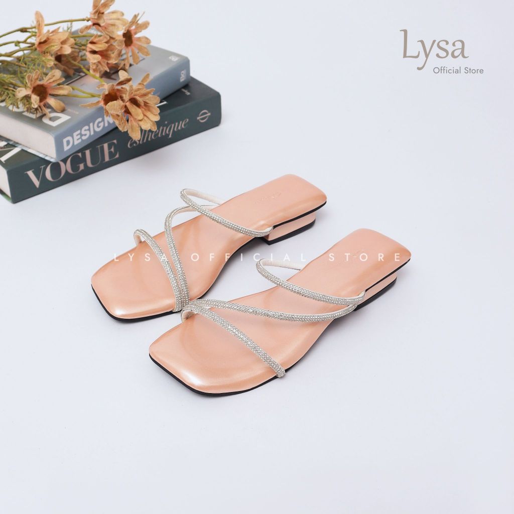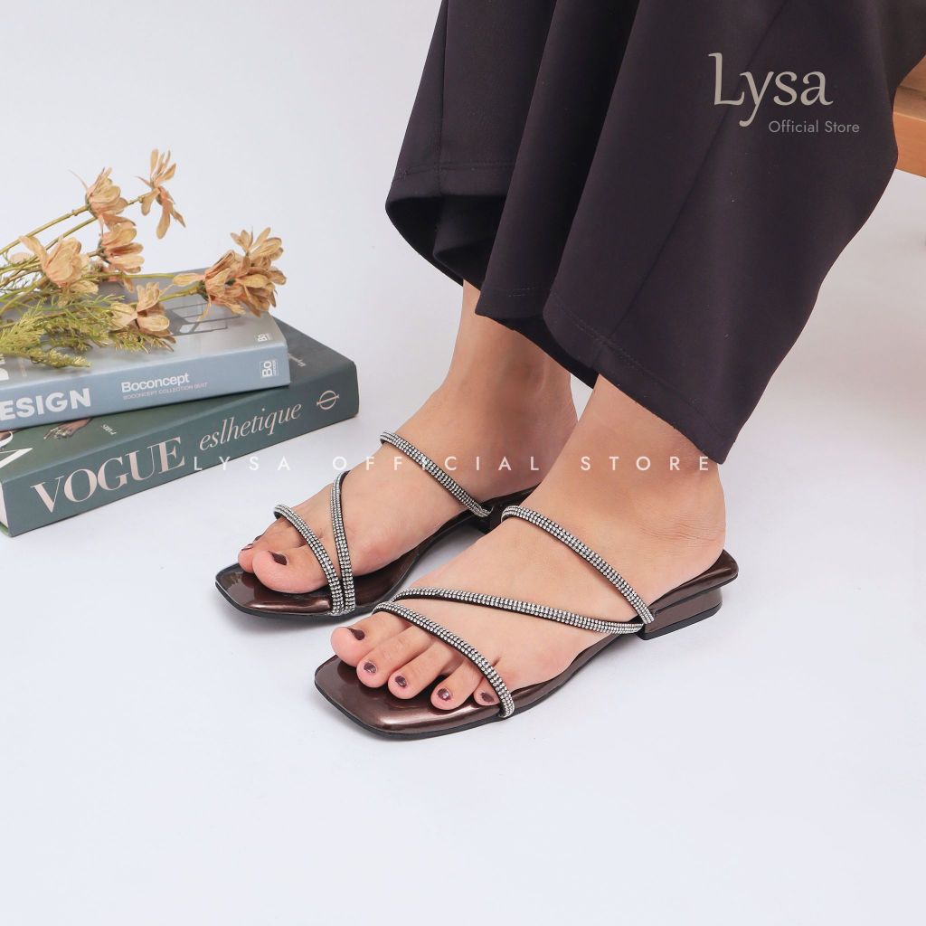 (Gratis Ongkir) Lysa Sandal Wanita Heels hak 2cm Adisty Variasi Tali Berlian Empuk Karet Non Slip - LS02