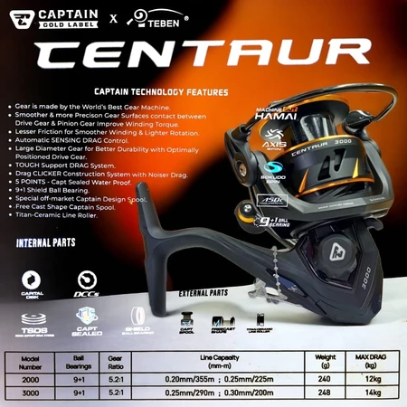REEL CAPTAIN CENCARU 2000PH, REEL CAPTAIN CENCARU 3000PH, REEL CAPTAIN CENTAUR 2000 , REEL CAPTAIN CENTAUR 3000 , REEL CAPTAIN CENTAUR 4000 , REEL CAPTAIN CENTAUR 6000