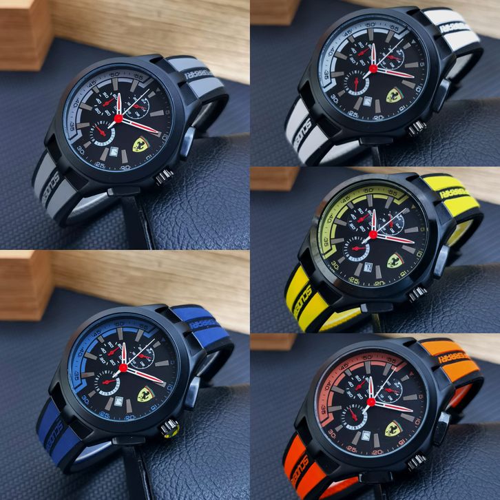 Jam Tangan Pria Ferrari / Ferrari Cowok Chrono & Tanggal Aktif FR 1002 - Tali Rubber
