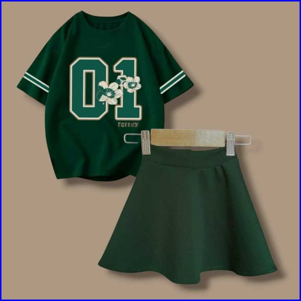 Follux - Setelan Anak Perempuan Rok Scuba Oversize Croptop Usia 1-10 Tahun