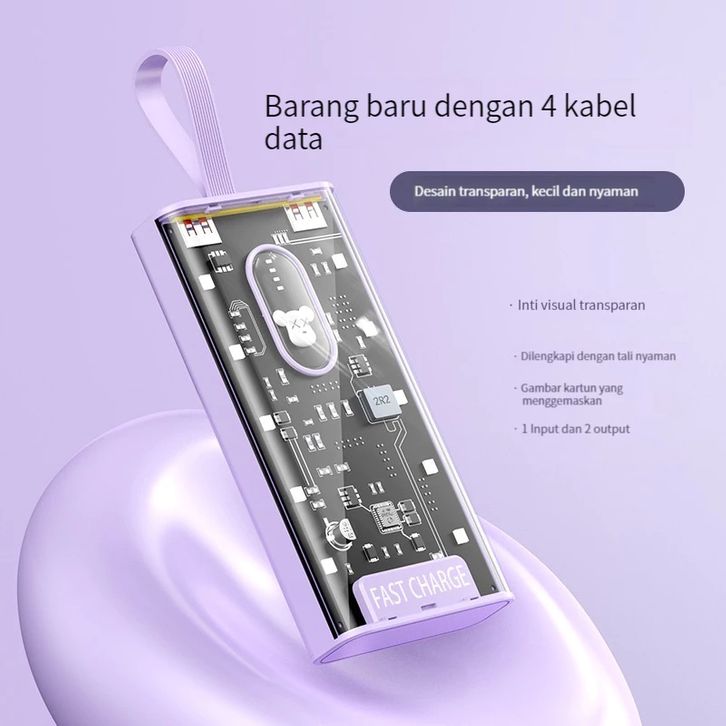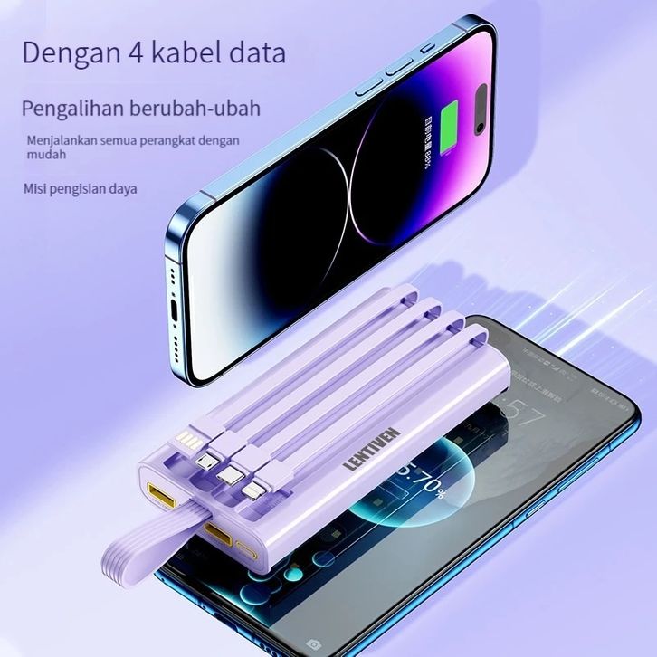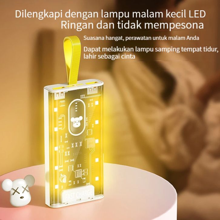 LENTIVEN Powerbank 30000 mAh 4 Kabel Cute LED Portable Fast Charger / power bank / power bank robot original