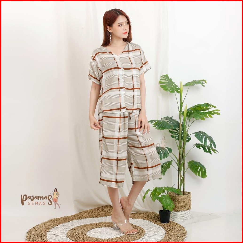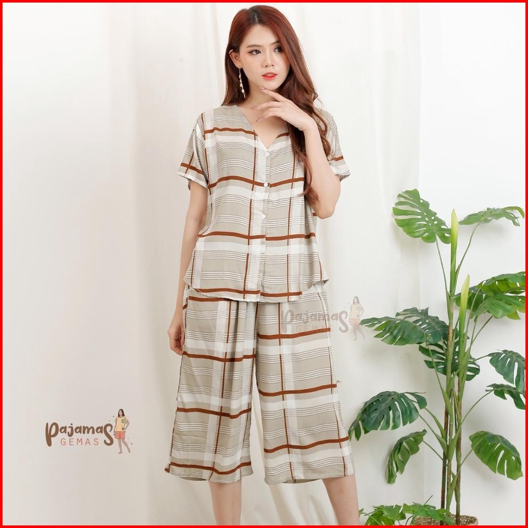 Piyama Lengan Pendek Piyama 7 8 One Set Rayon Piyama Busui
