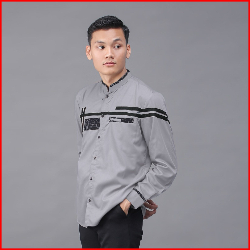 Baju Koko Pria Elrumi Lengan Panjang Motif Zolied Warna Abu