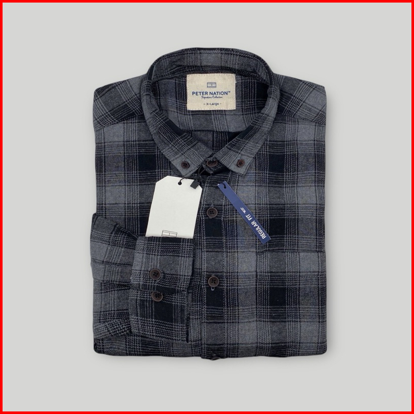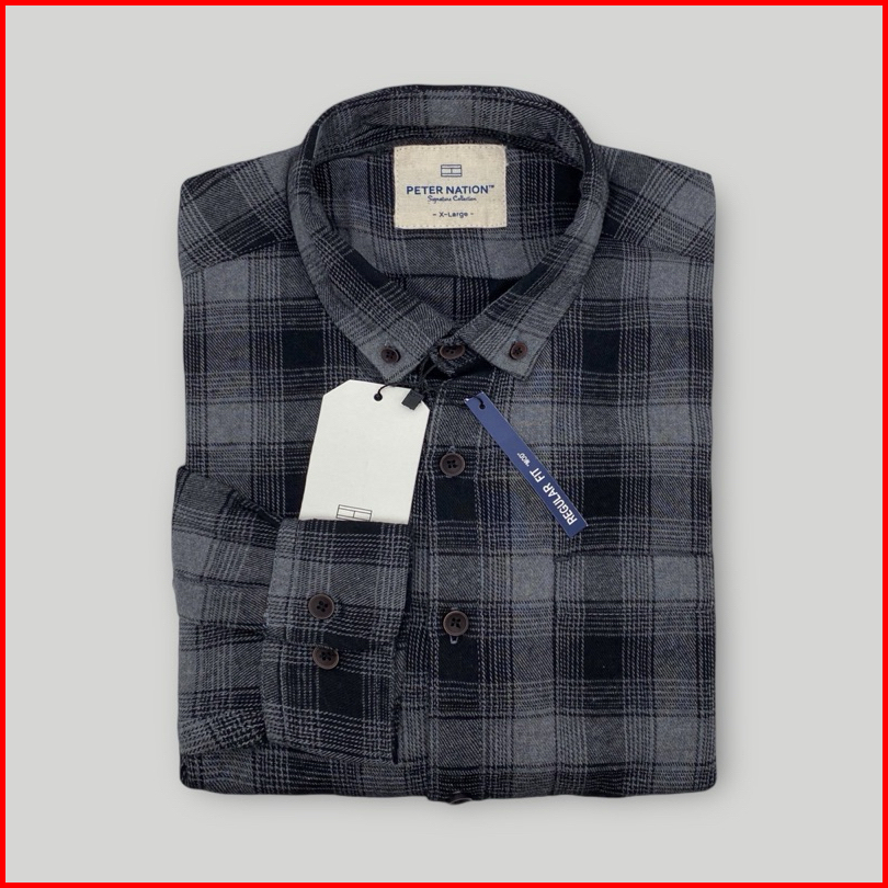 Peternation Kemeja Flanel Pria Wool Basic Panjang Regular Fit