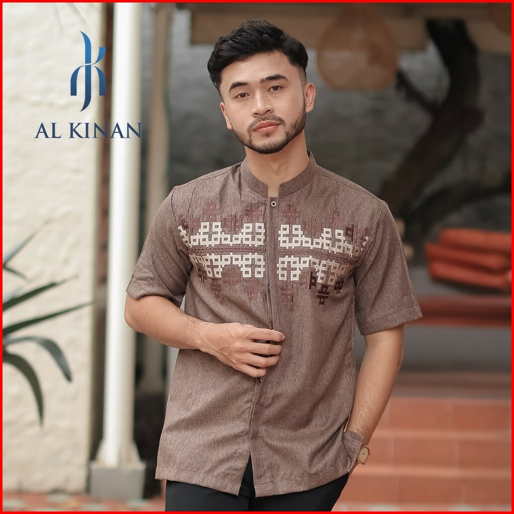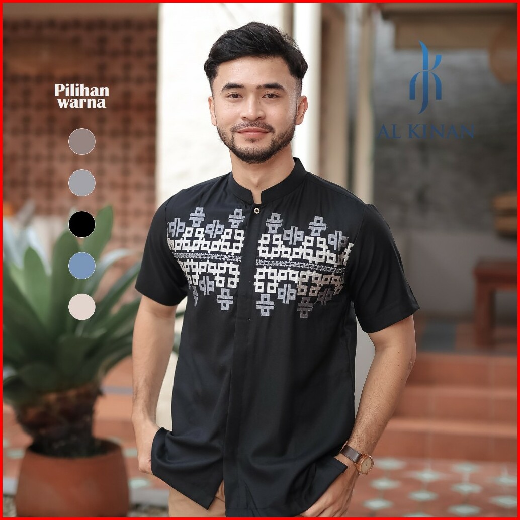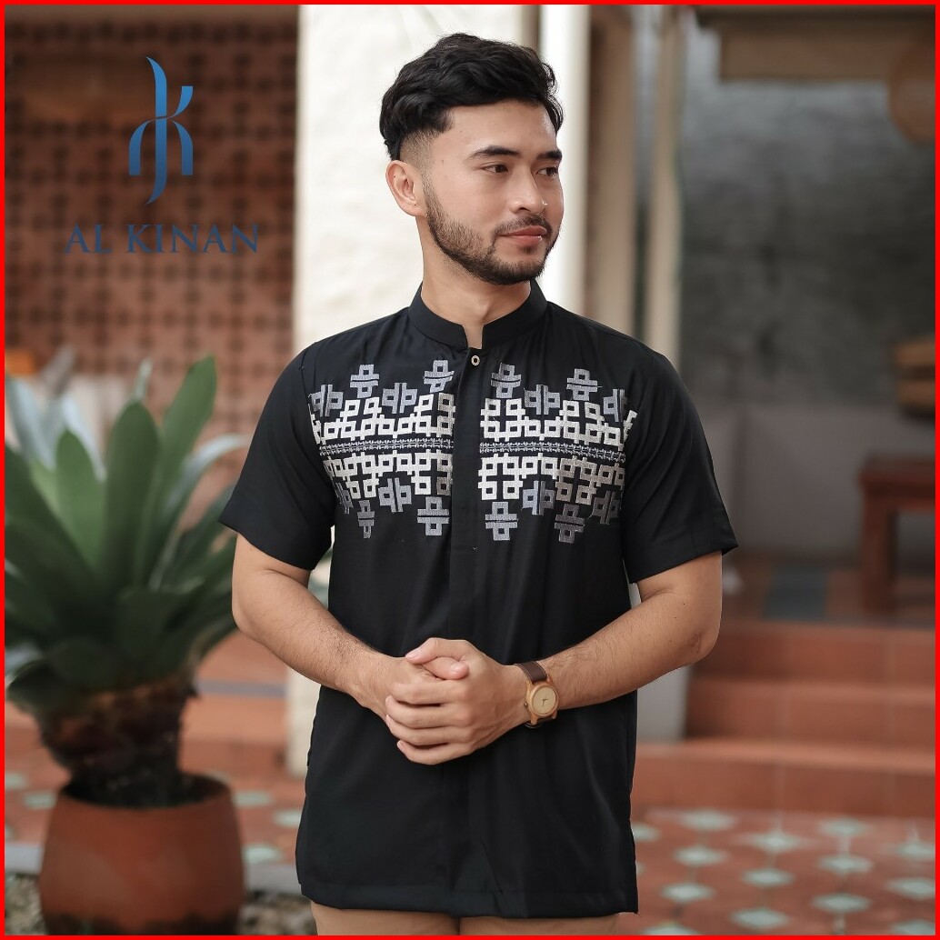 Baju Koko Muslim Pria Bordir Katun Madina Premium Warna Lengan Pendek Alkinan Ak056