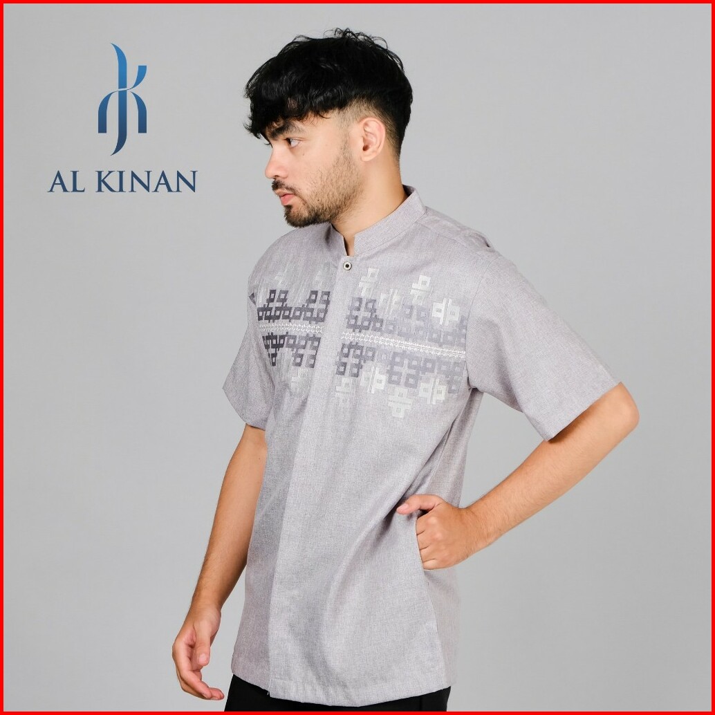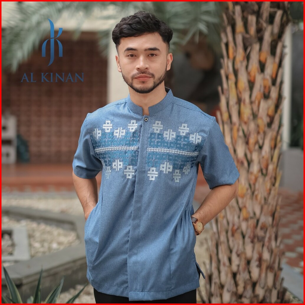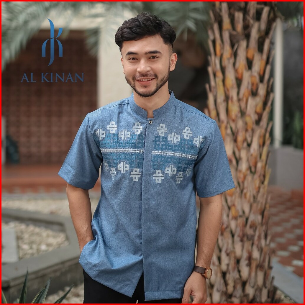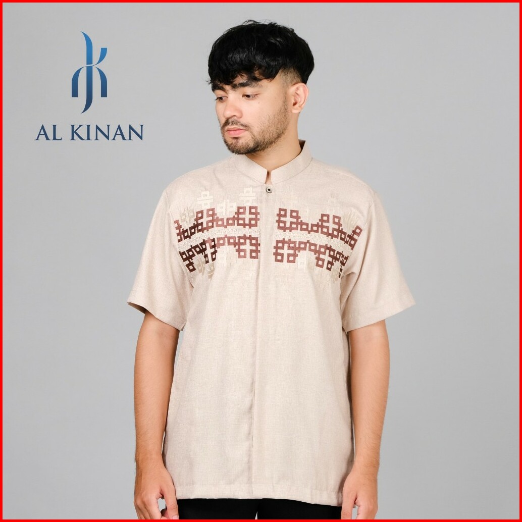 Baju Koko Muslim Pria Bordir Katun Madina Premium Warna Lengan Pendek Alkinan Ak056