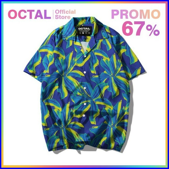 Octal - Kemeja Motif Pattern Pantai Printing Kasual Pria - Wanita Kmp-0088