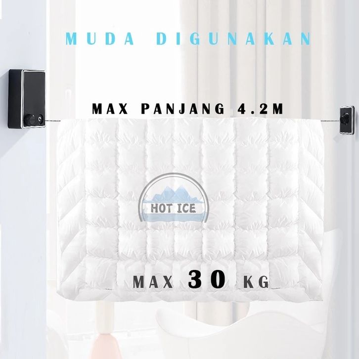 Jemuran Baju Portable Indoor Outdoor Retractable Tali Clothesline Bahan Stainless