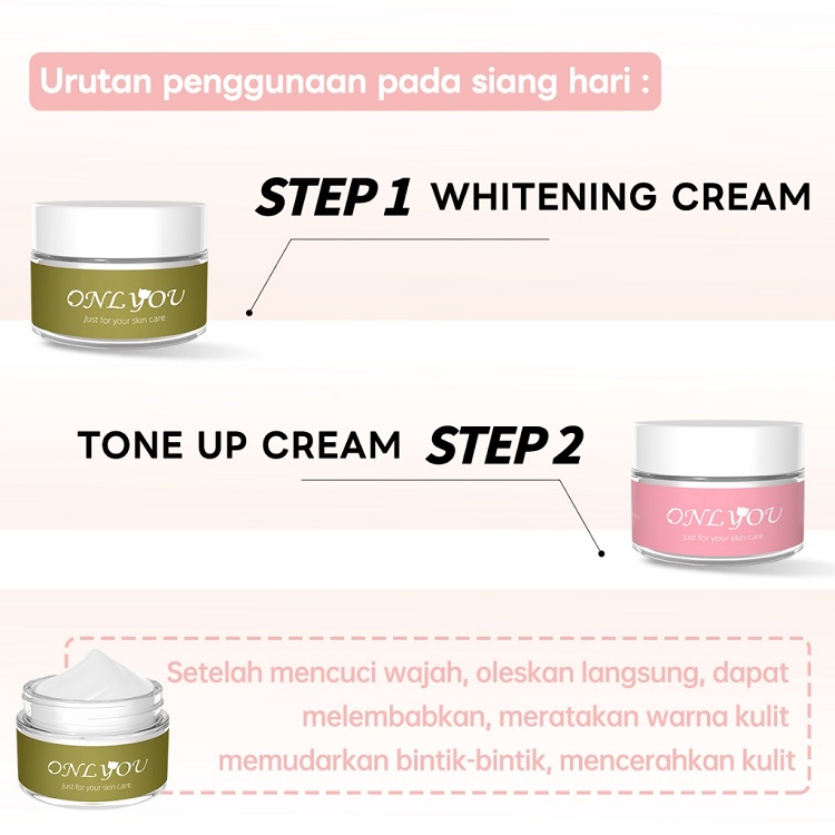 ONLYOU Whitening PAKET Whitening essence cream 30G Menyamarkan Pori-pori toning Instant Brightening & Bright Stuff Tone