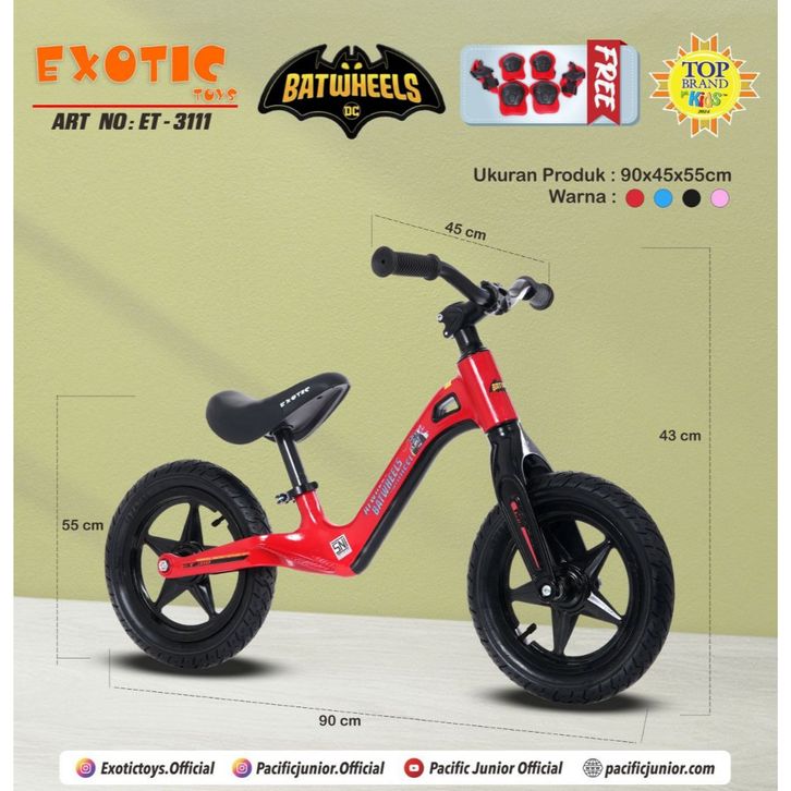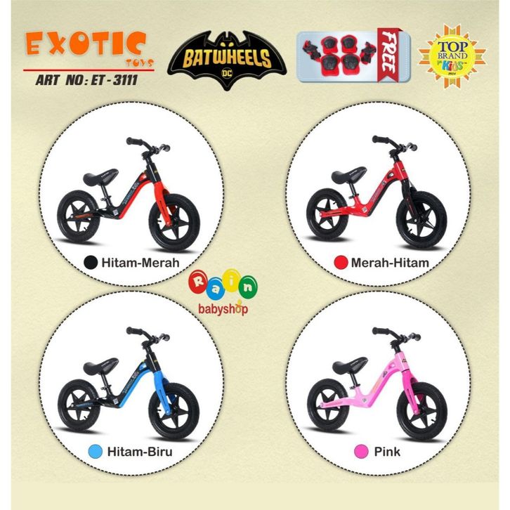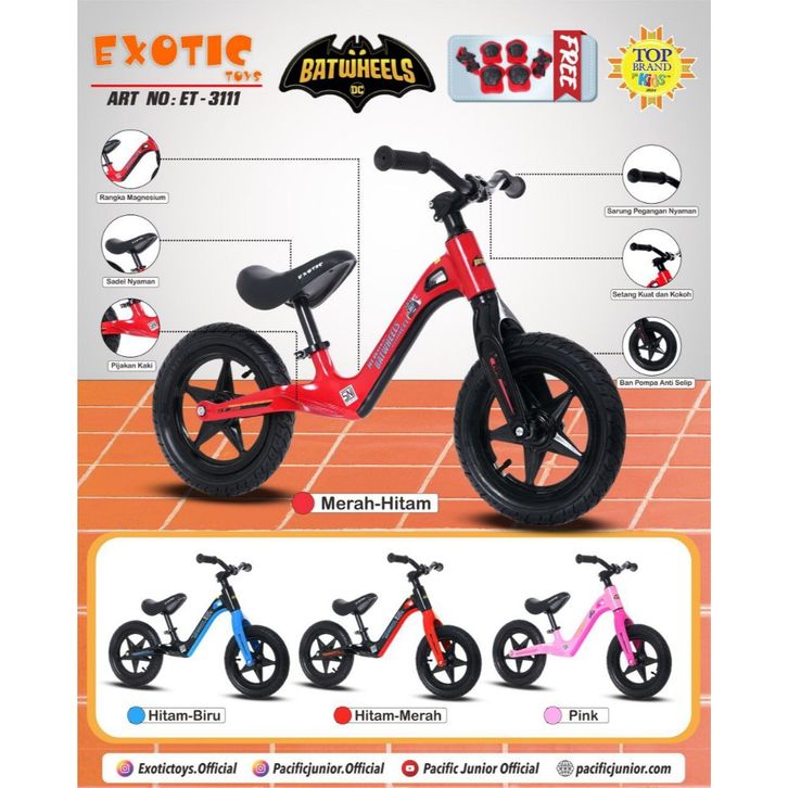 Sepeda Anak ET3111Batman Exotic ET 311 Push Bike Balance Bike Velg Racing Ban Karet Bisa di Pompa ET