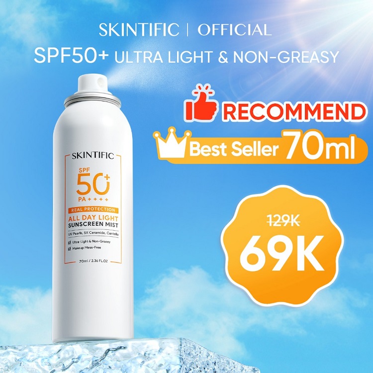 SKINTIFIC - All Day Light Sunscreen Mist SPF 50 PA++++ 70ml | Sunscreen Spray UV Mist Tone Up Sun Shield Sunscreen White