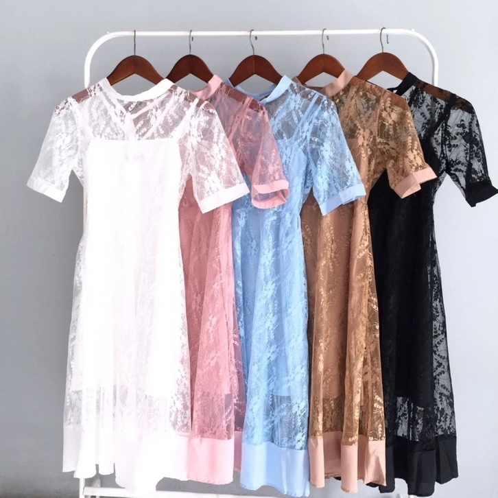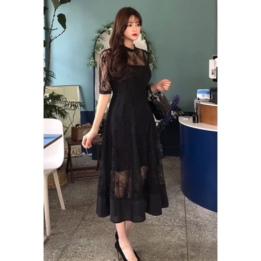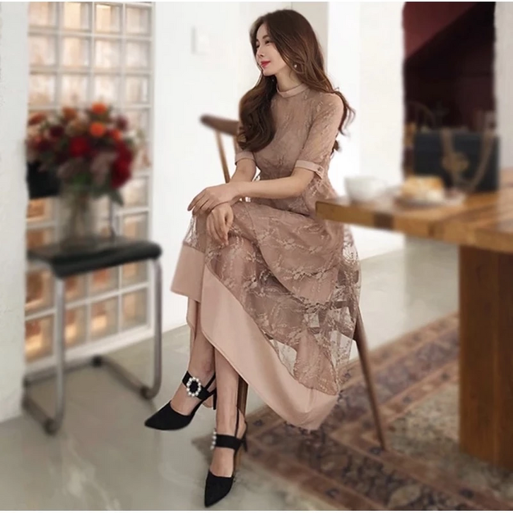 DRESS WANITA KOREA PESTA RENDA SIMPLE POLOS KONDANGAN ELEGANT D0859 VIVI KOREAN STYLE LACE VINTAGE MIDI
