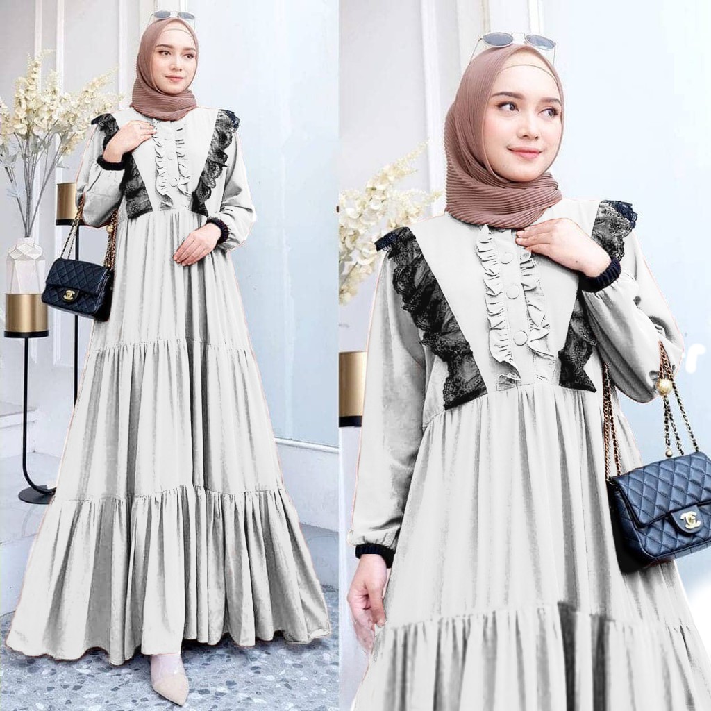 Gamis Model Baru 2025 Dress wanita dewasa gamis putih simple elegan RENVILA MAXI kekinian dan fashionable