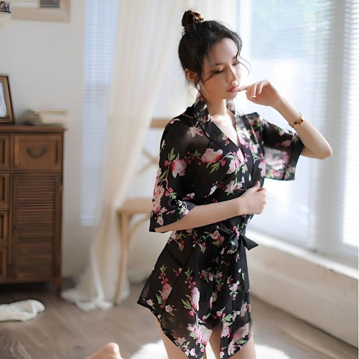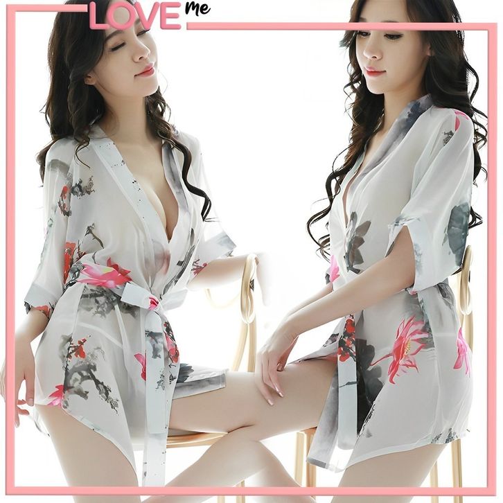LOVEme Set Kimono Lingerie Sexy + G String Baju Tidur Bahan Sifon Dengan 9 Variasi Ukuran One Size Model Korean 1274