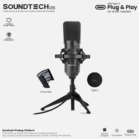ZANEXT | Microphone Condenser for PC Gaming Streaming Cardioid and Omnidirect SOUNDTECH 2.1 USB