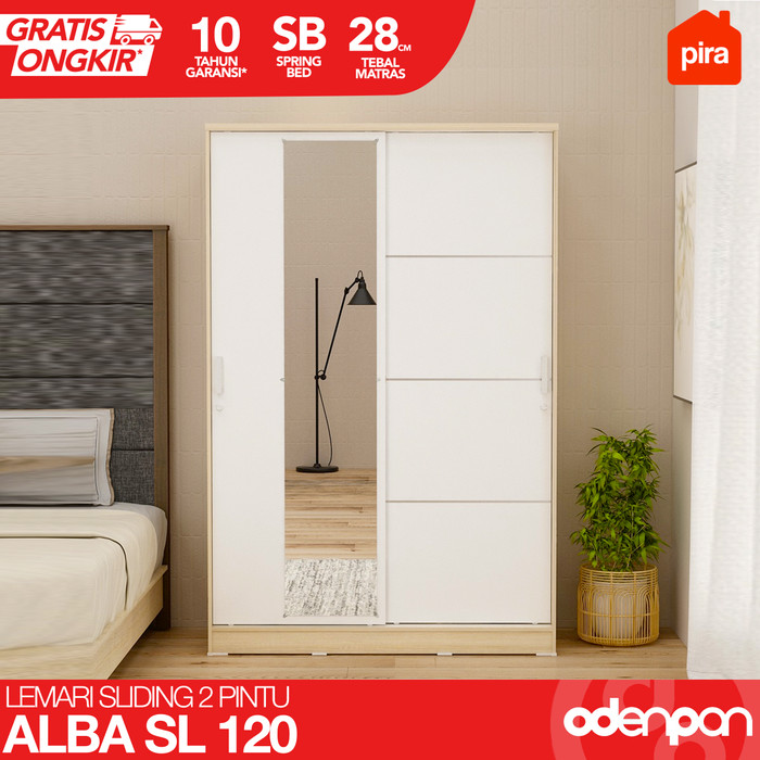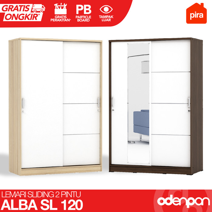 PIRA LEMARI PAKAIAN / BAJU SLIDING 2 PINTU DENGAN CERMIN ALBA SL 120 - WALNUT-WHITE
