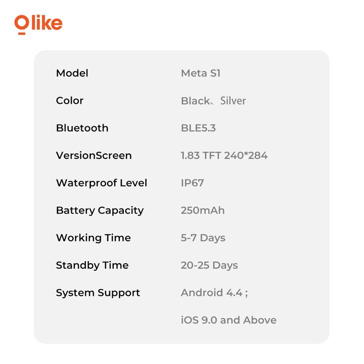 OLIKE Smartwatch META S1 HD Screen 1.83 Inch Strap 20mm Custom Face IP67 Bluetooth Call