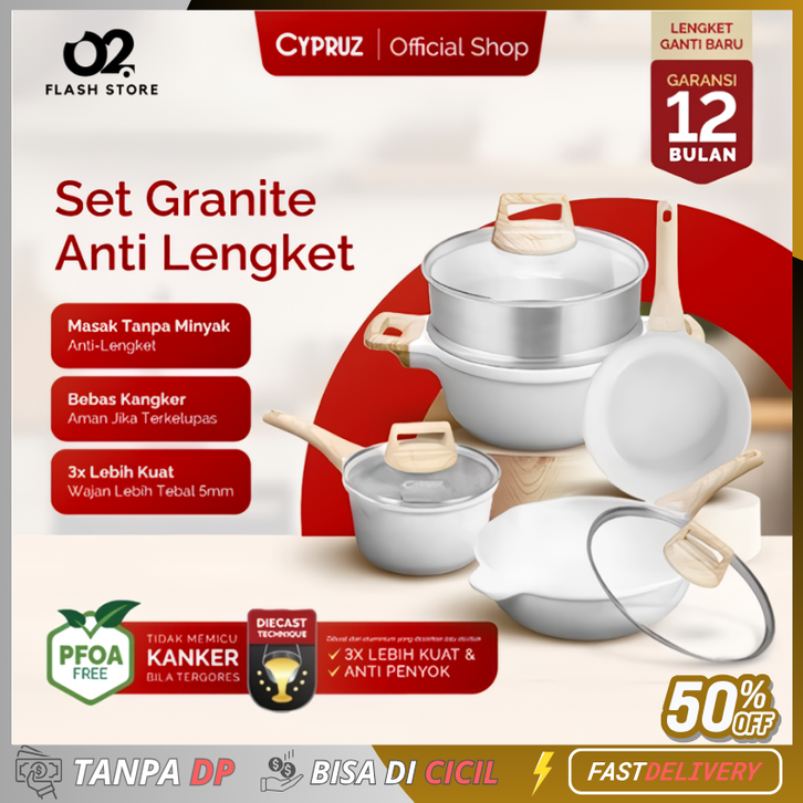 Teflon Anti Lengket 1 set Cypruz Pero Wajan Panci Alat Masak presto penggorangan 4 7 12 pcs Supra bolde maspion