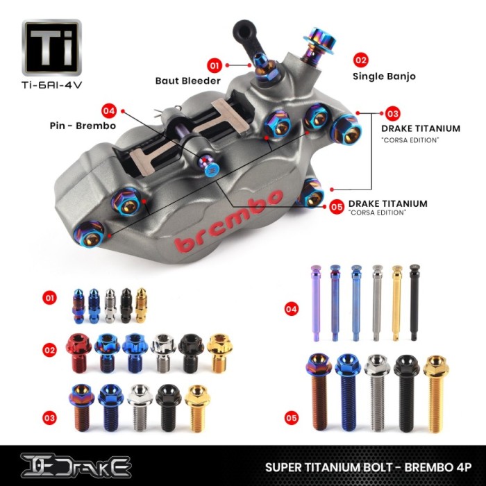 DRAKE TITANIUM BAUT KALIPER BREMBO 4P CORSA EDITION 5 BURN TITAN