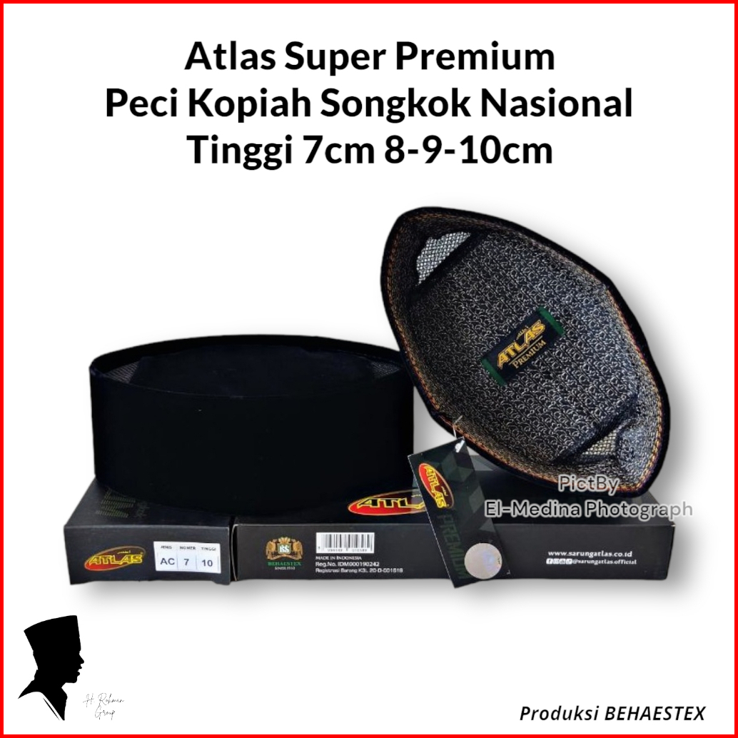 Peci Kopiah Hitam Atlas Premium Ac Tinggi 7 8 9 10 Cm Songkok Nasional Atlas Bludru Super Halus