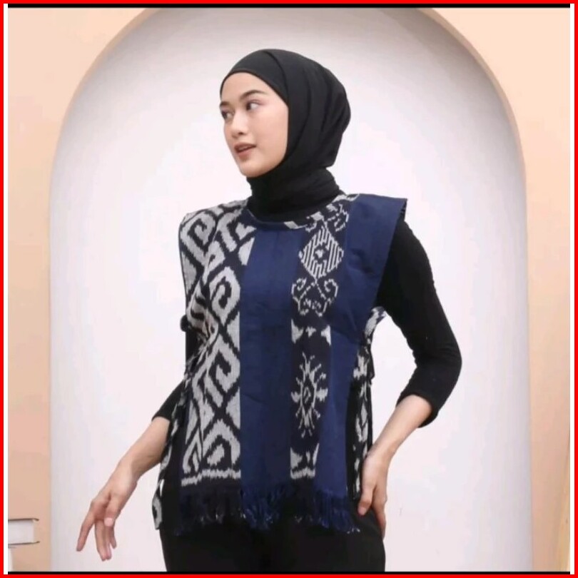 Ready Stok Vest Pendek Tenun Kekinian Bahan Ikat Nyaman