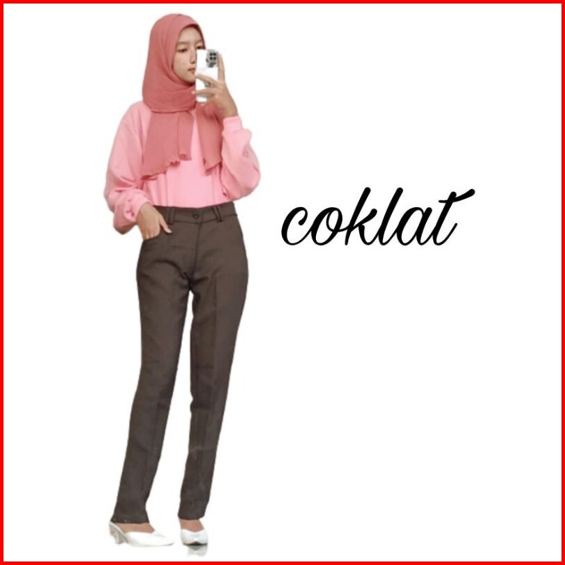 Celana Kerja Kantor Wanita Resleting Celana Kain Premium Jumbo Slim Fit High Waist Terbaru Terkini