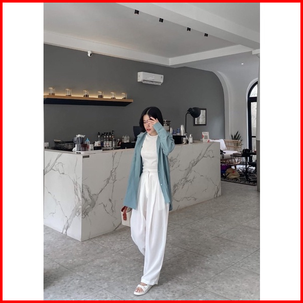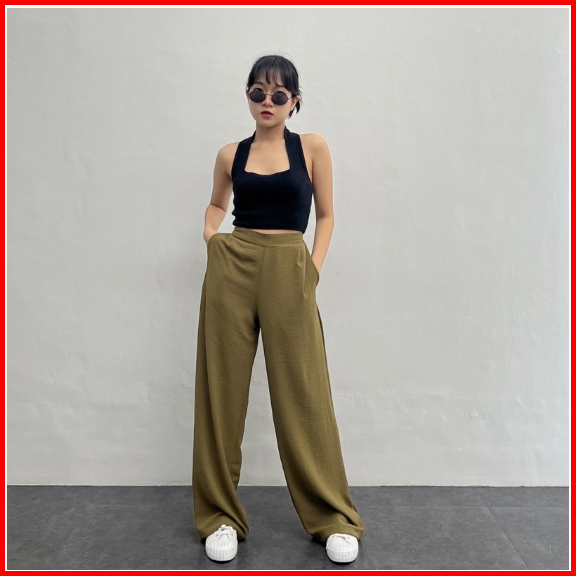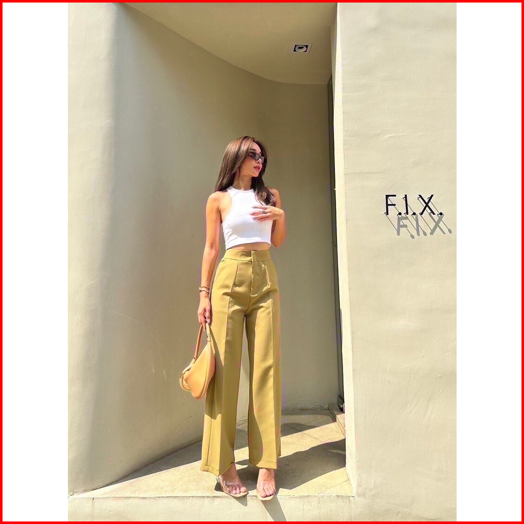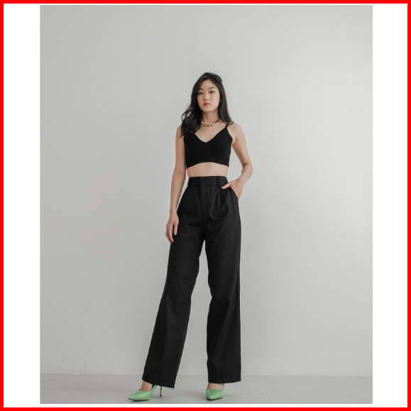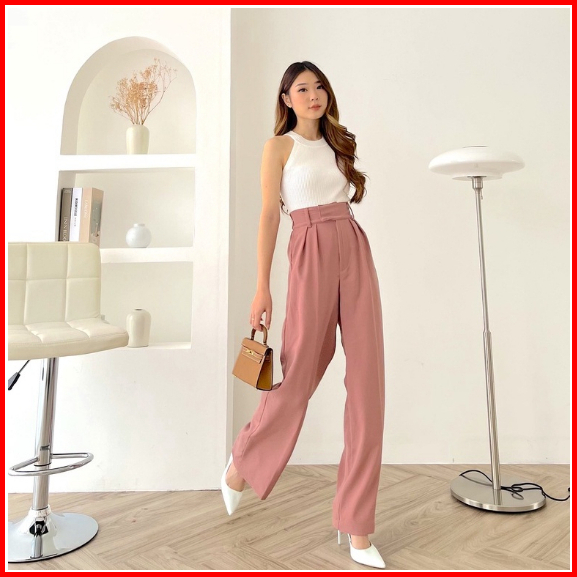 Celana Kulot Kantor Uniqlo Loose Pants Highwaist Wanita Katun Rayon Premium Hak