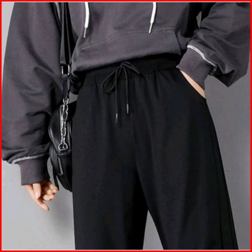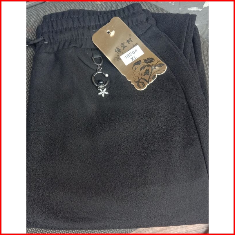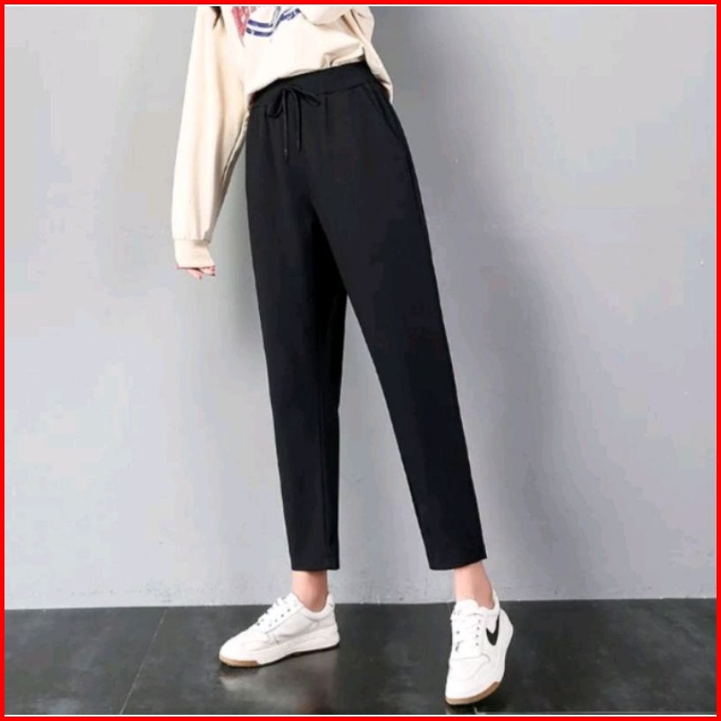 Celana Wanita Polos Hitam Import Model Tali Serut Size L-7xl