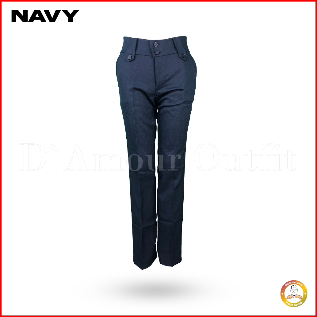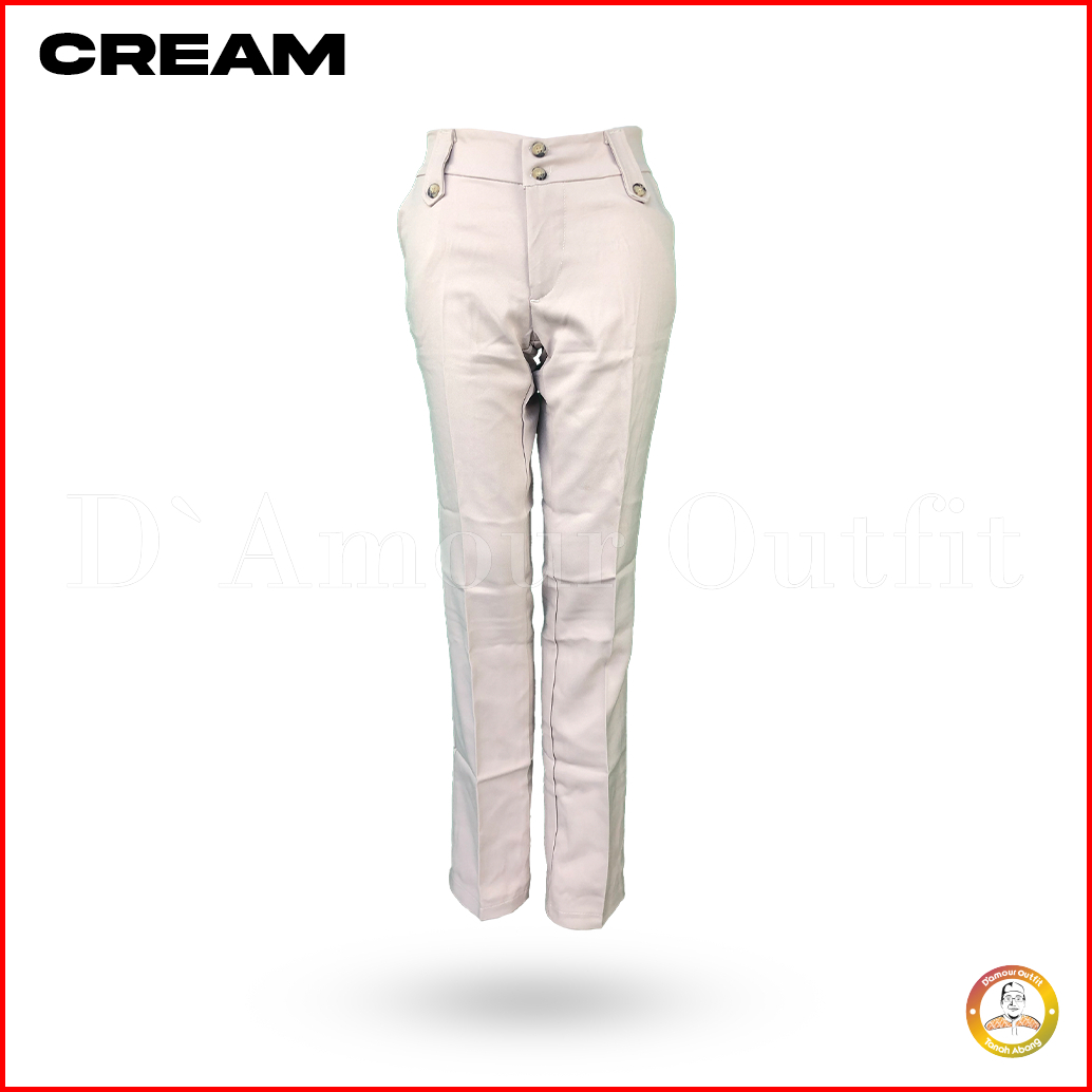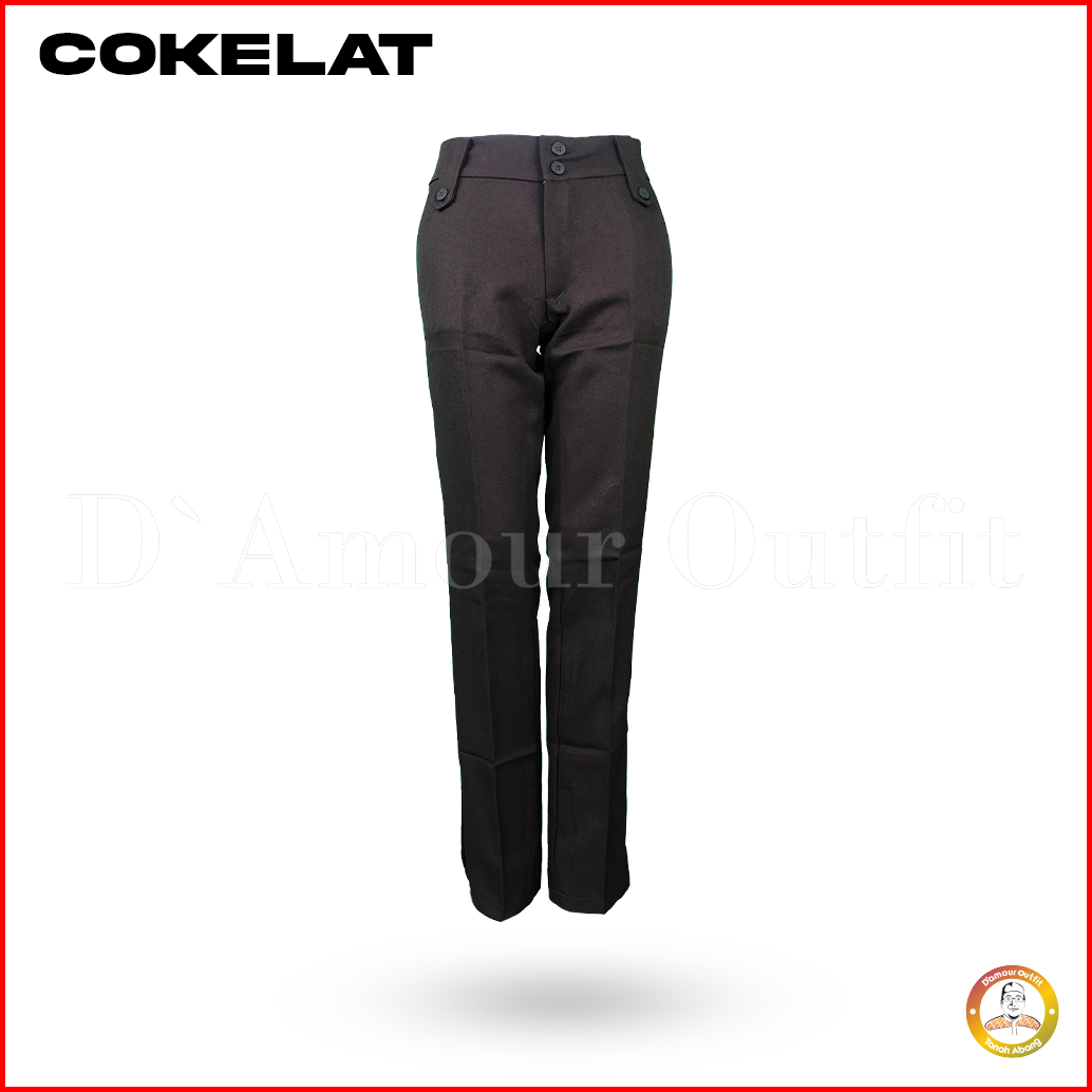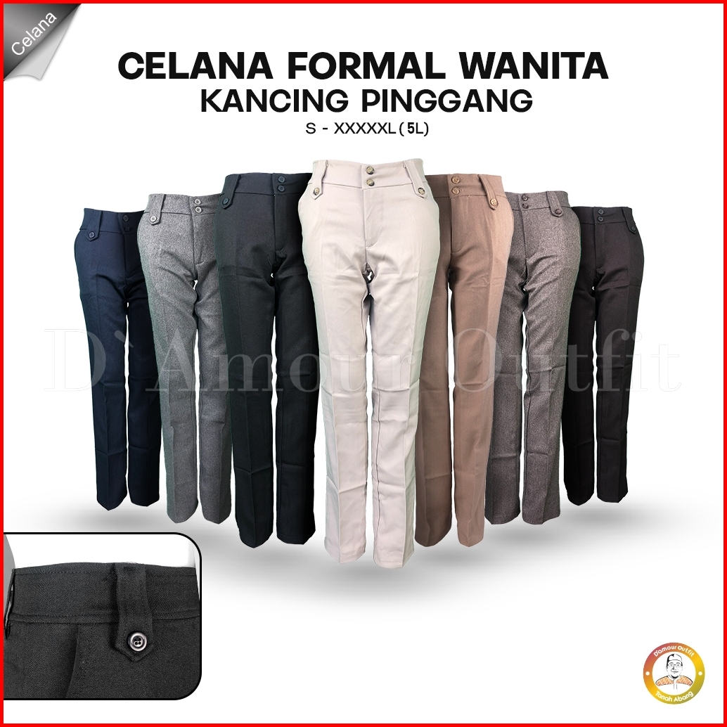Celana Panjang Wanita Kancing Pinggang Polos Pakaian Kerja Formal Kantoran Clana Bahan Cewek Kantor Dewasa Anak Motif Sa