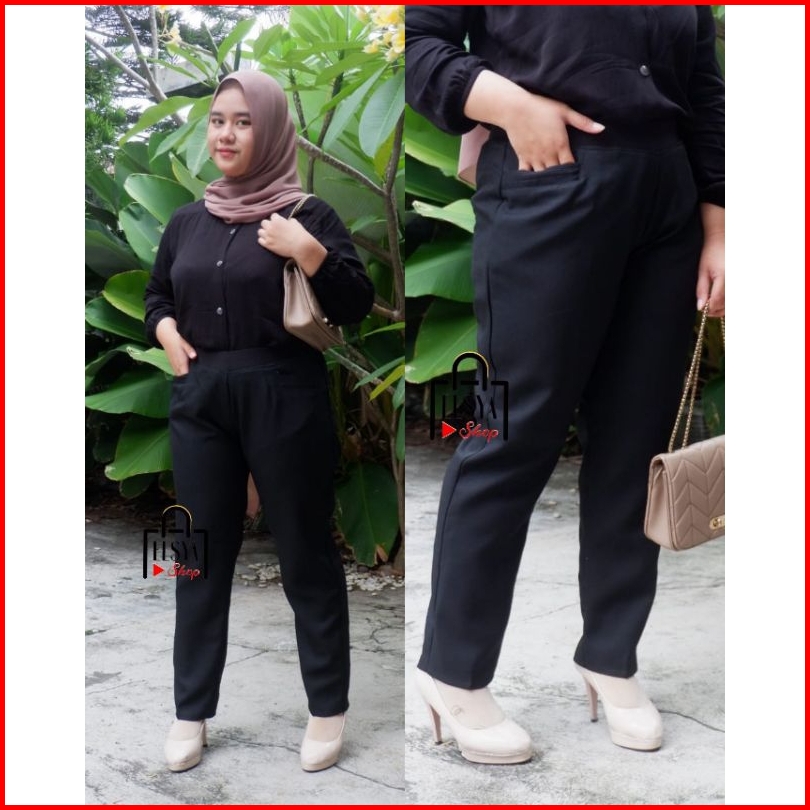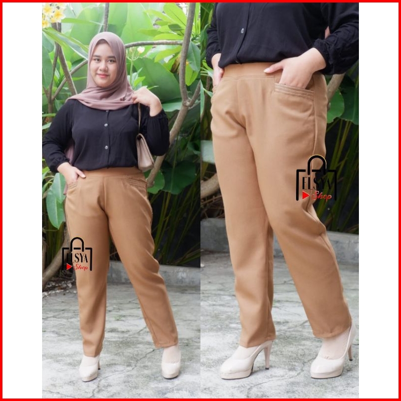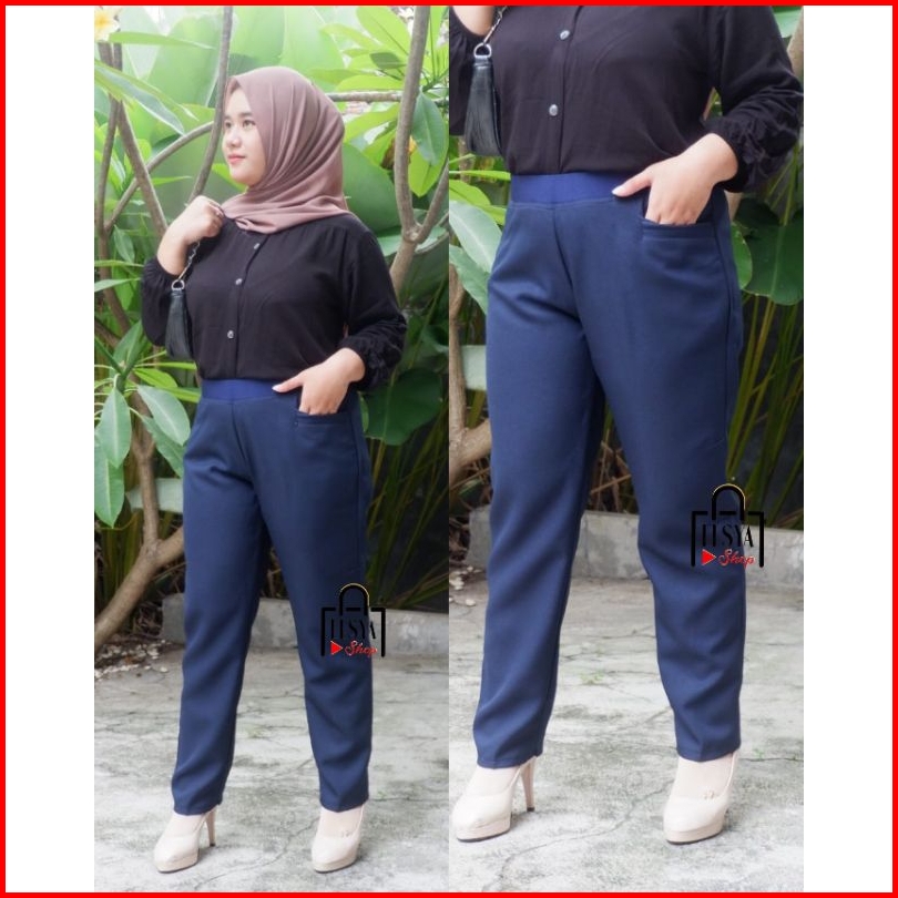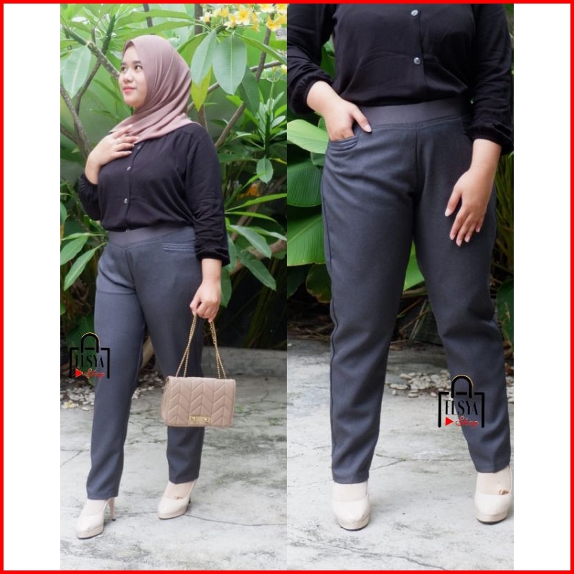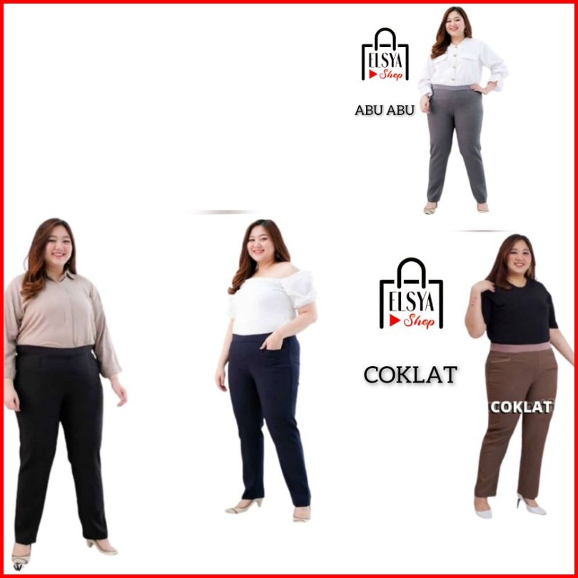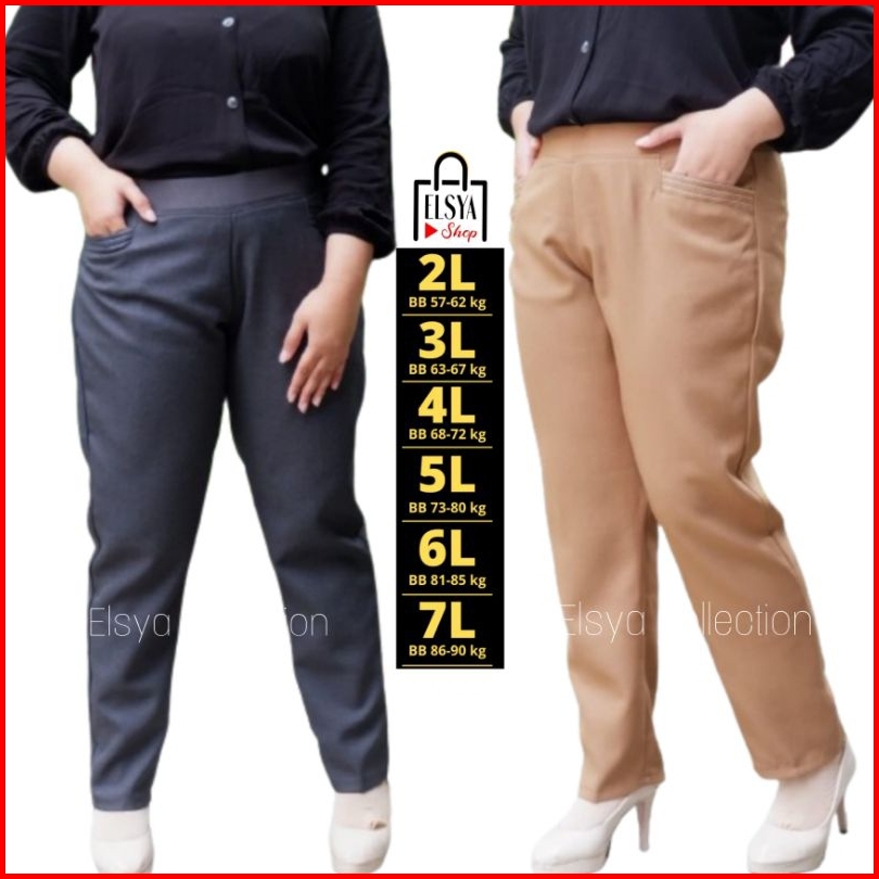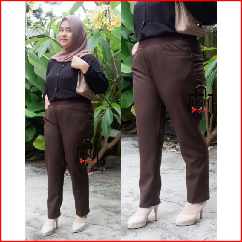 Celana Kantor Jumbo Wanita Pinggang Karet Higtwaist Muat Sampai Bb 90kg