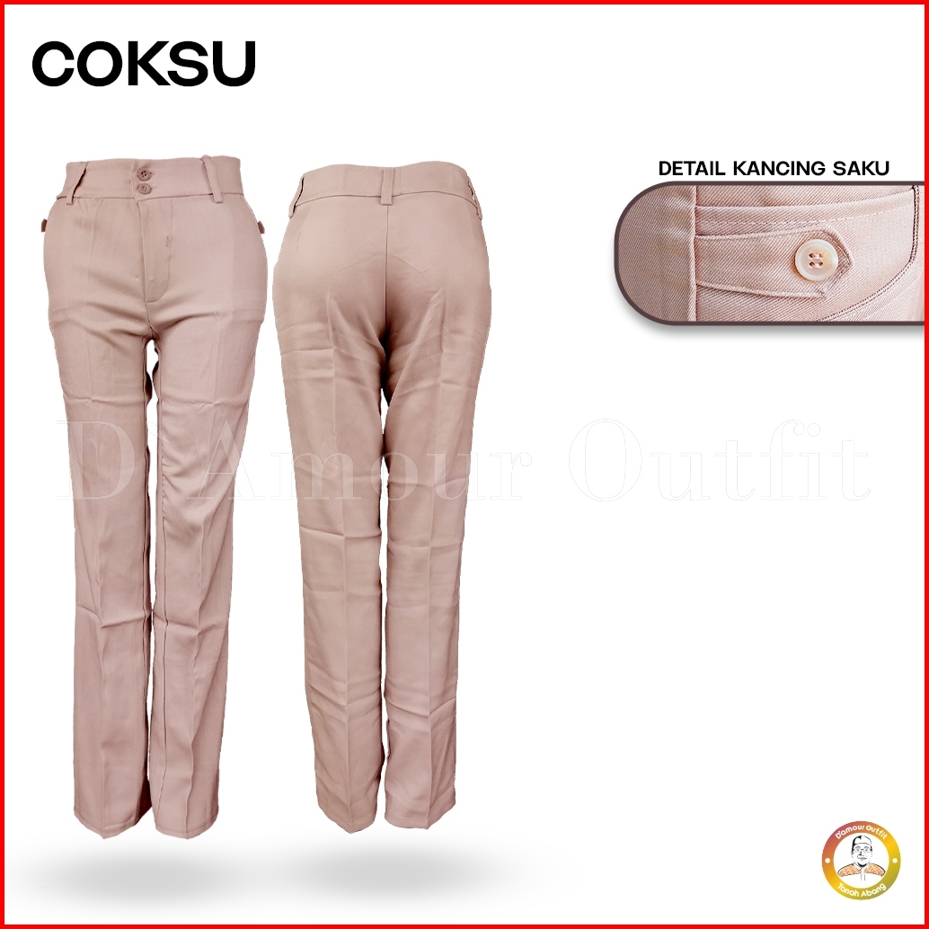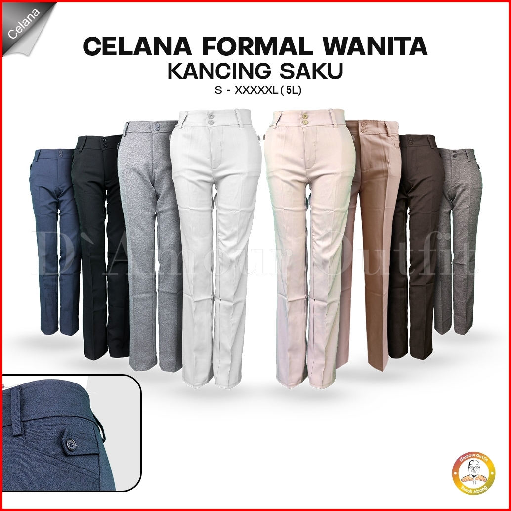 Celana Kerja Wanita Panjang Formal Variasi Kancing Saku Bahan Kain Slim Fit Rapi Elegan Nyaman Dipakai Sehari-hari Kerja