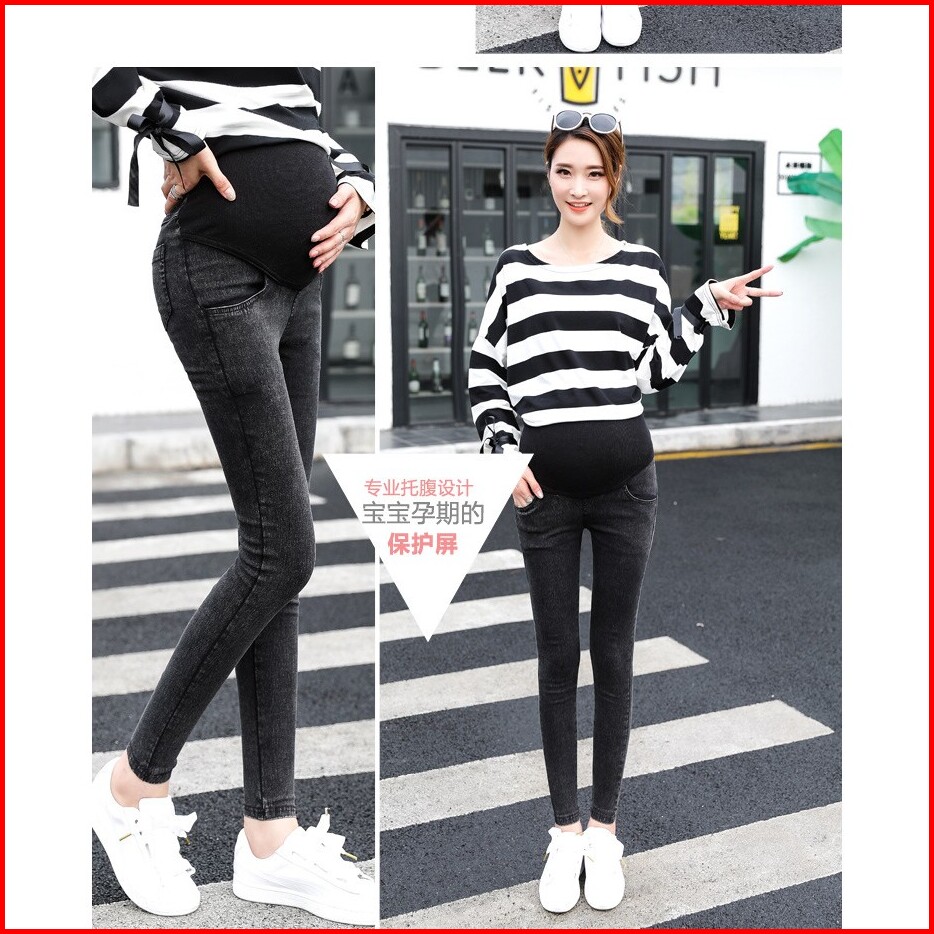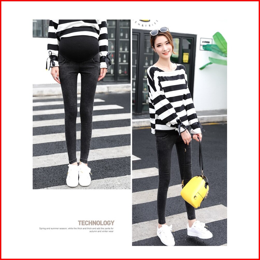 Hyren.id P28 Celana Panjang Hamil Soft Jeans Import Denim Fashion Long Pants Murah Hitam Biru