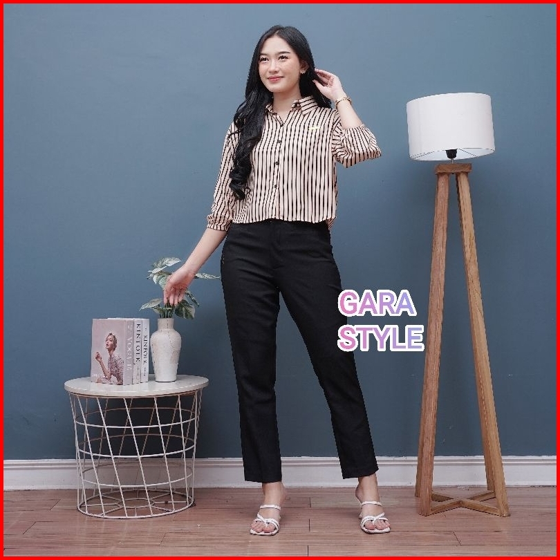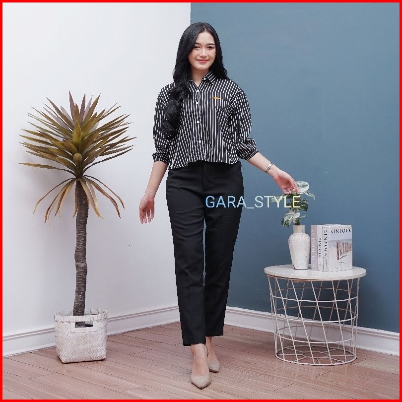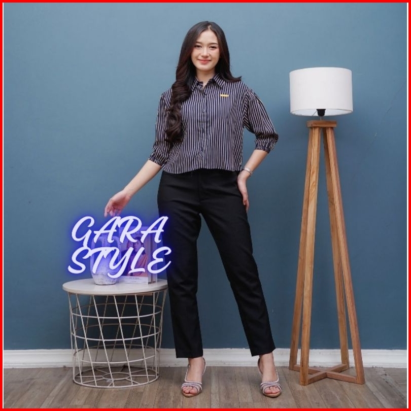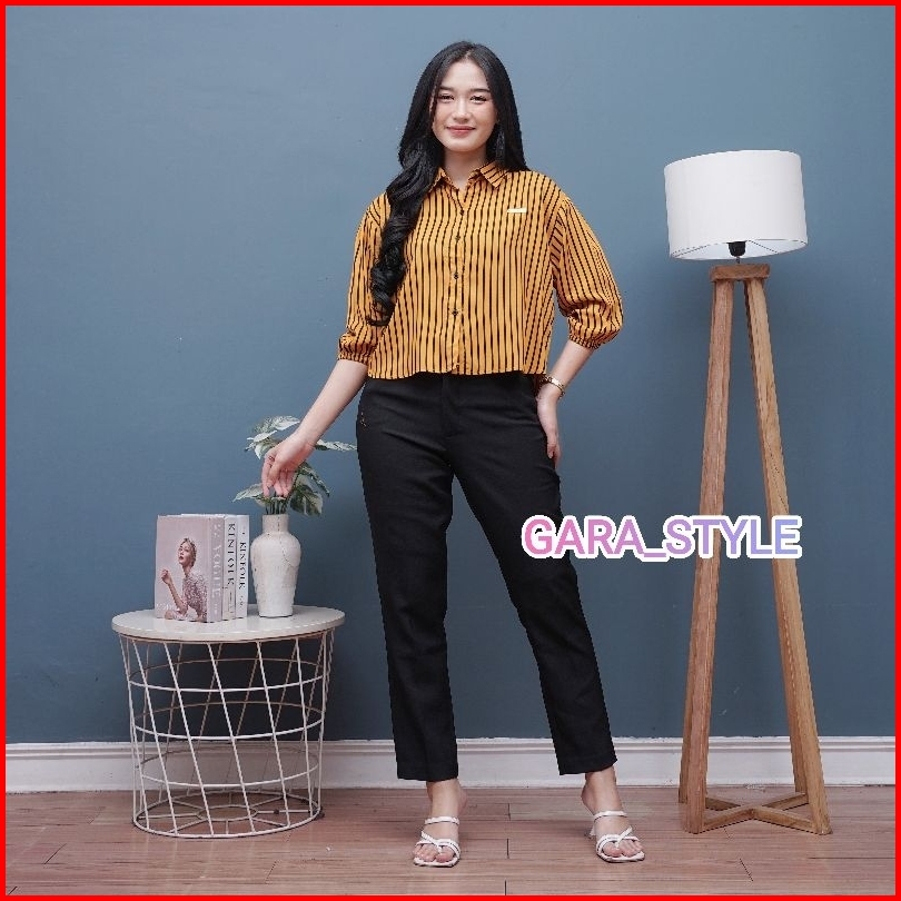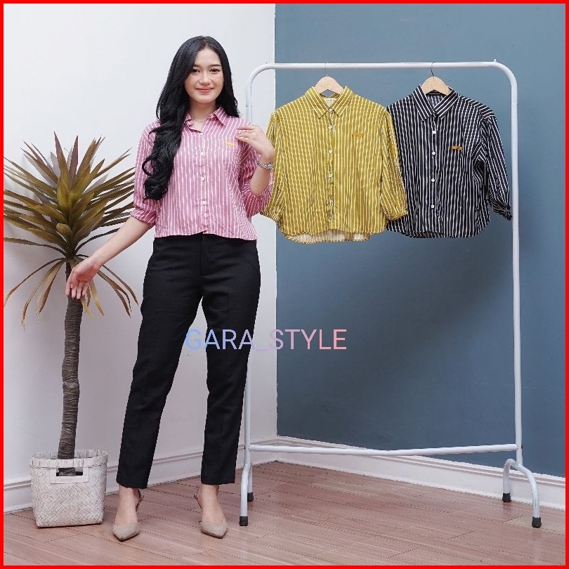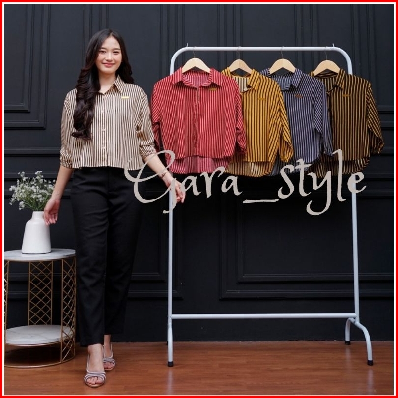 Gara Crop Motif Salur Bahan Katun Rayon Premium