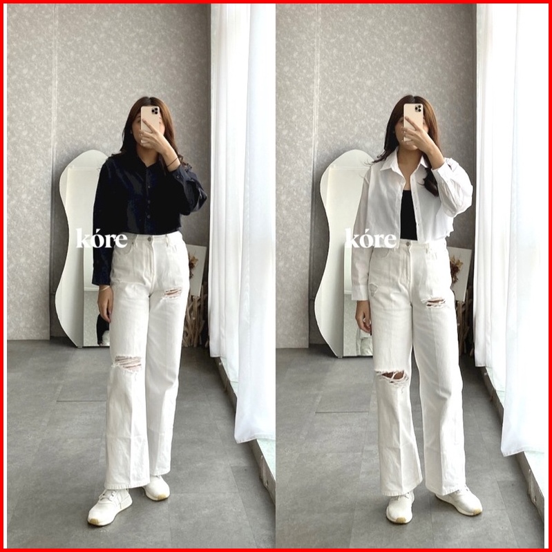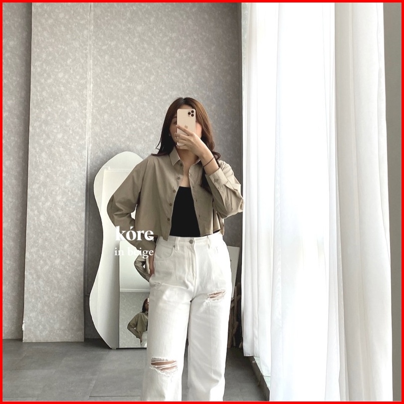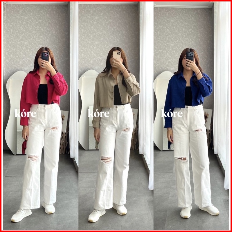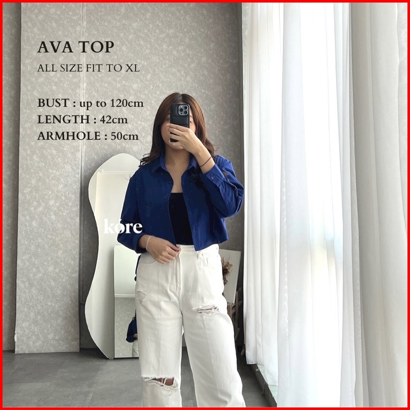 Ava Top Oversize Crop Top Kemeja Crop Lengan Panjang Oversized Polos Wanita Bahan Cotton Poplin Oversize Ld118 All Size